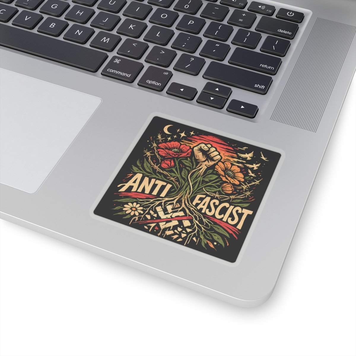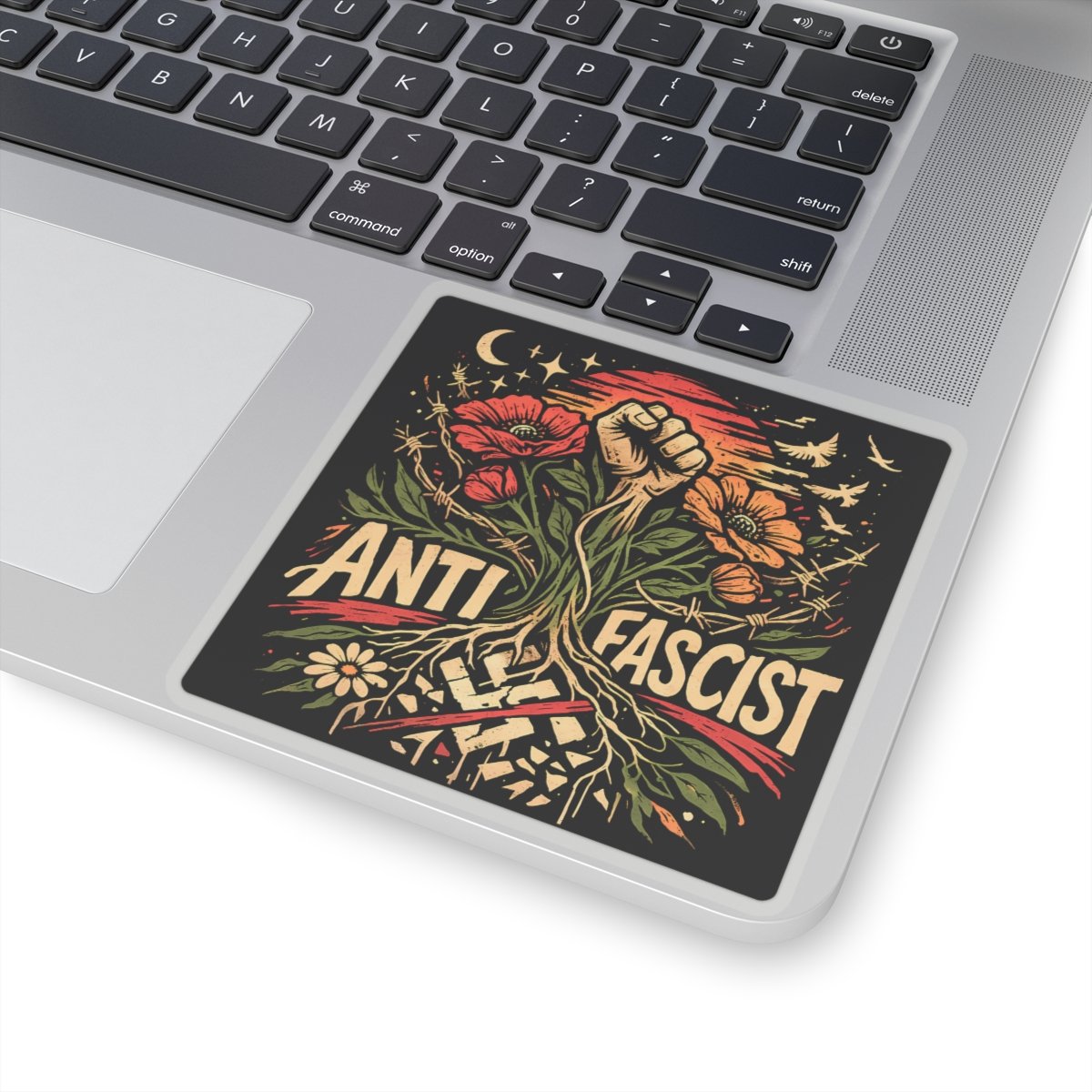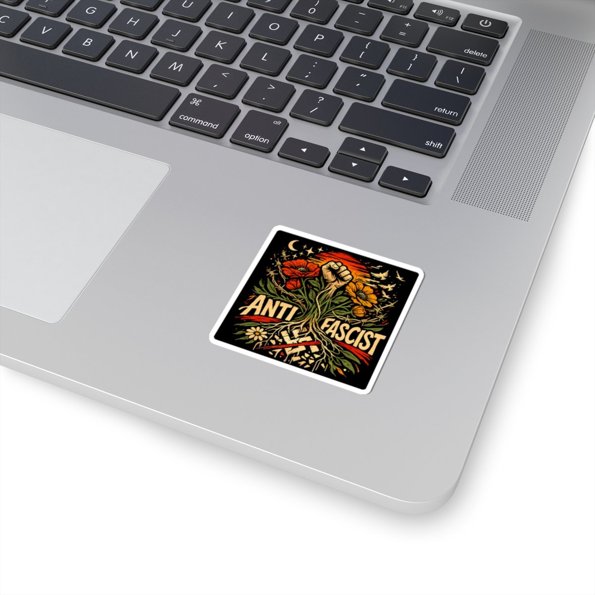 This sticker targets high-intent political searches and activist merchandise traffic. People search for anti fascist decals, protest stickers, political vinyl stickers, activist laptop decals, and resistance merchandise. This product sits directly in that demand.