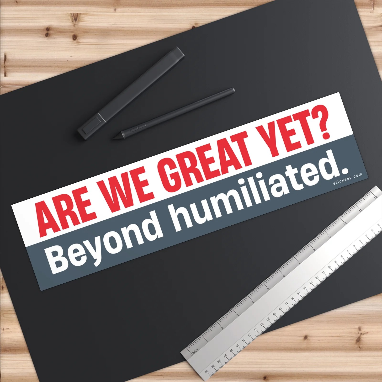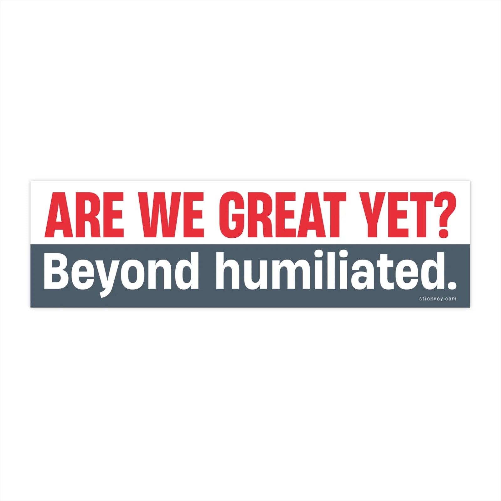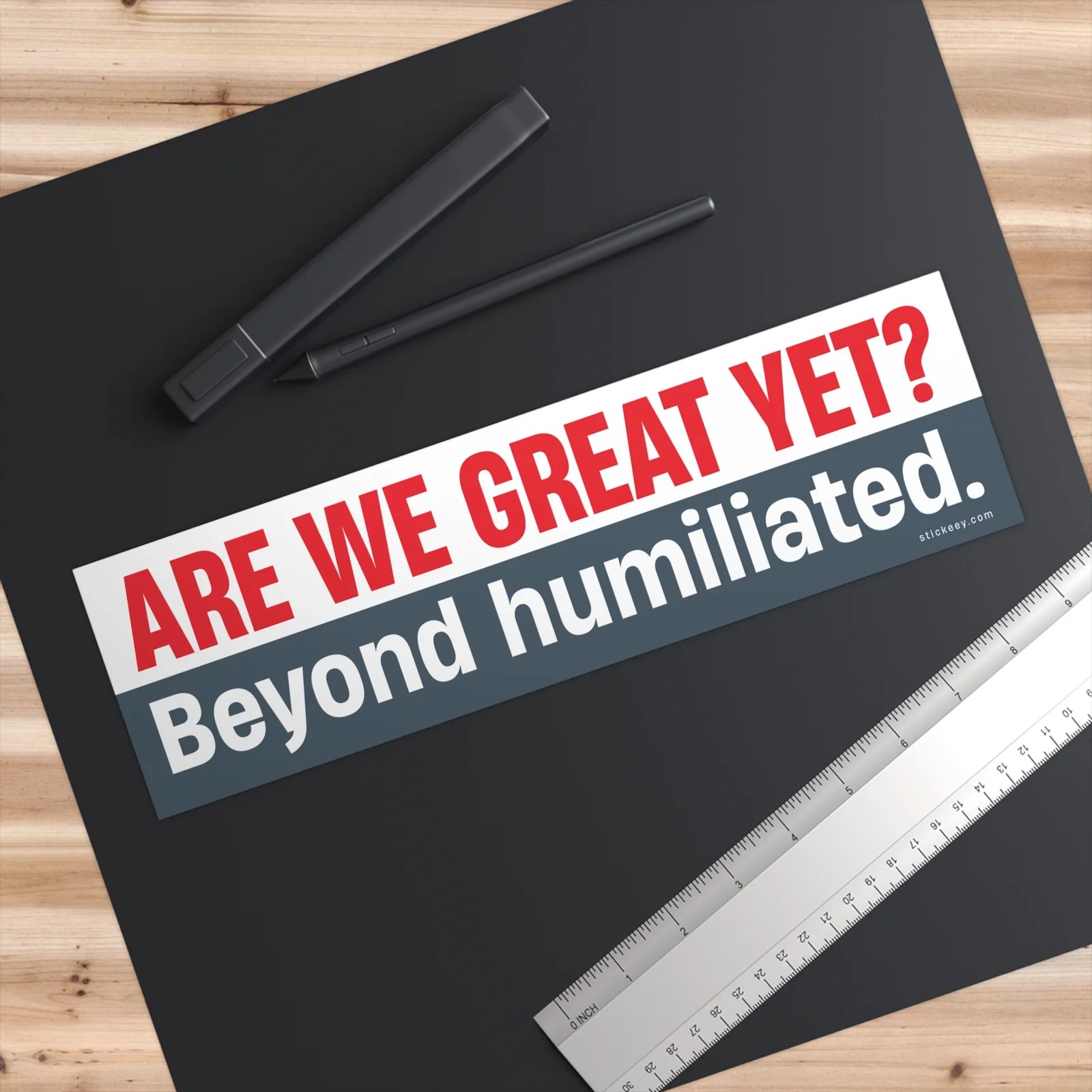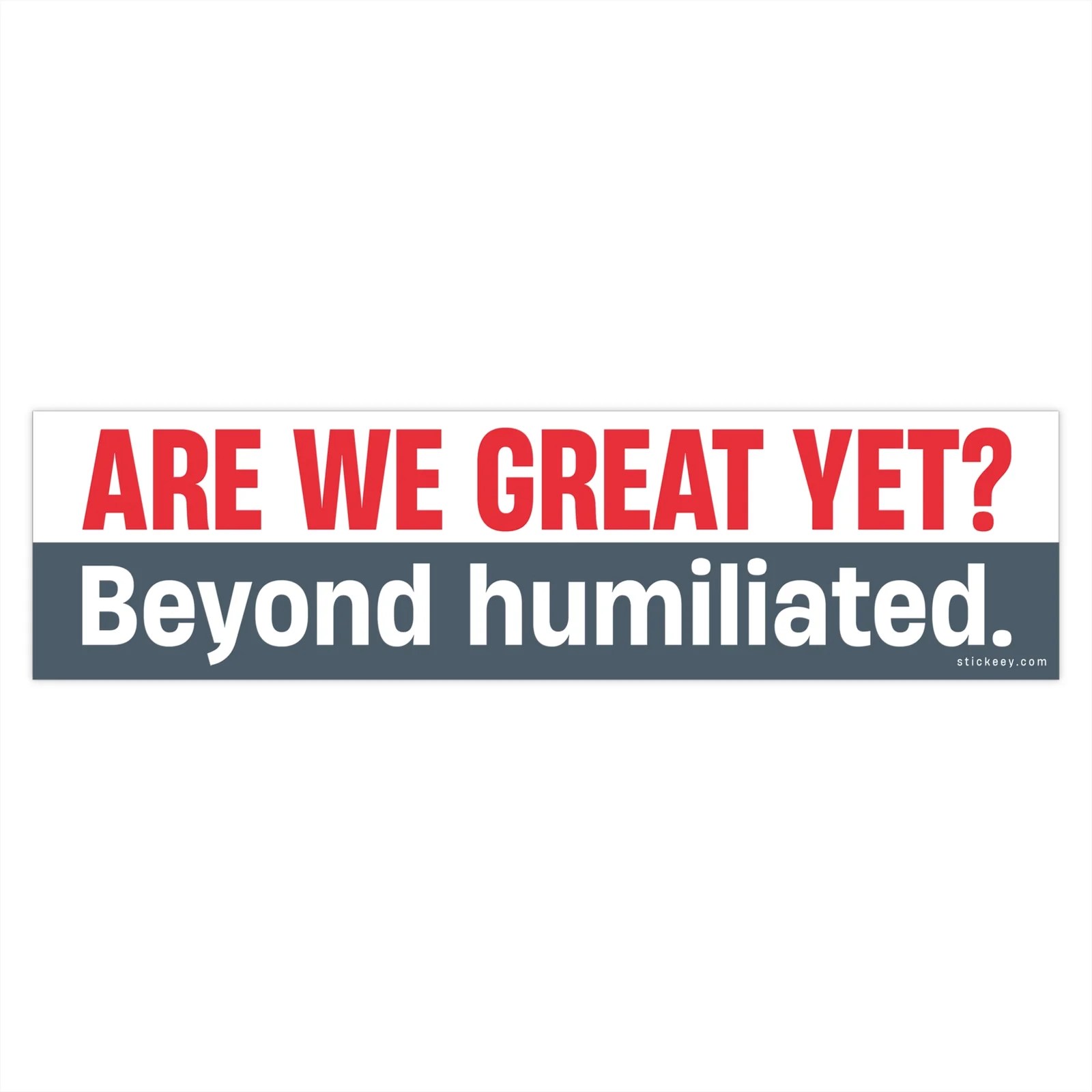 Are We Great Yet? Beyond humiliated Bumper Sticker