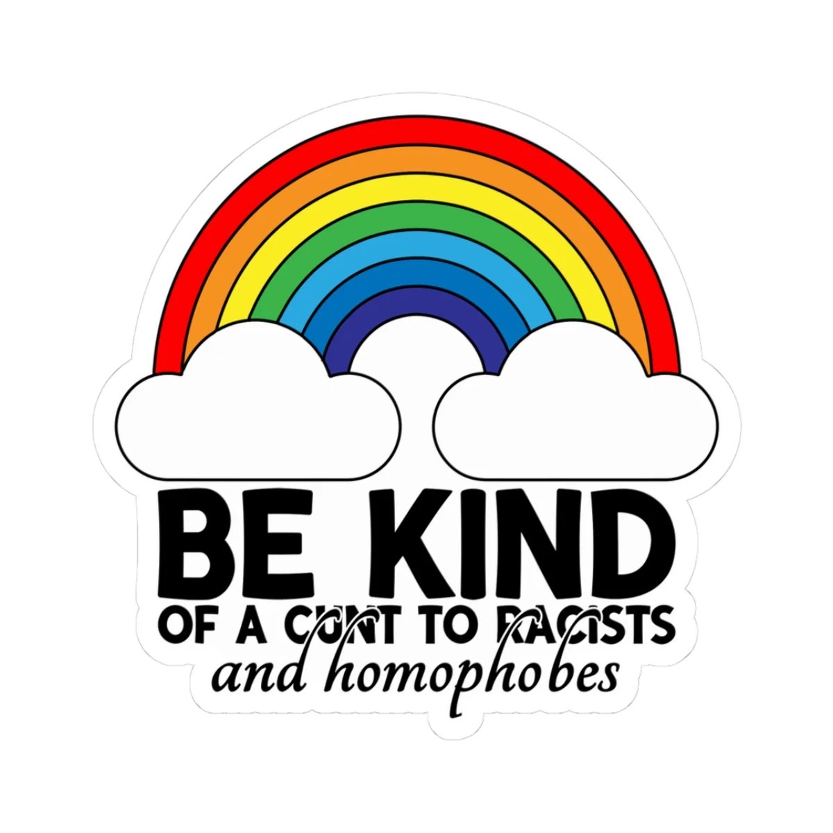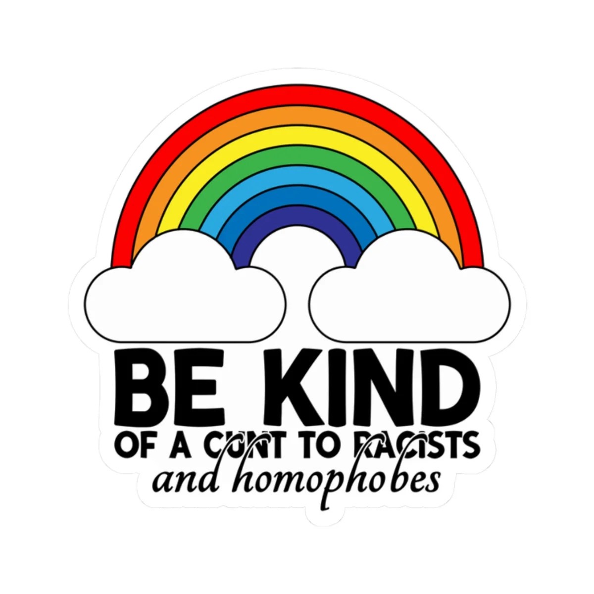 Be the first to review “Be Kind Of A Cunt To Racists And Homophobes Sticker” Cancel reply