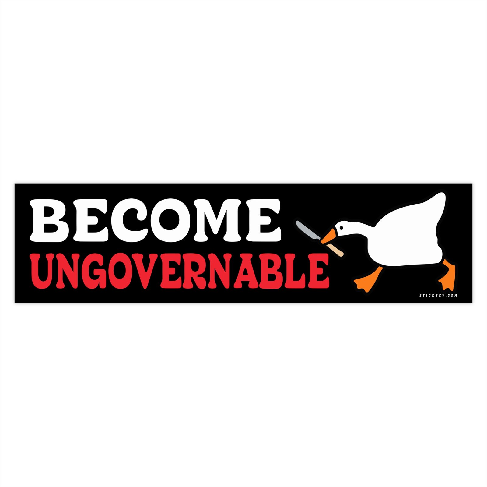 Cause chaos with this “Become Ungovernable” goose bumper sticker. Featuring a wild-eyed goose ready to dismantle society, this sticker delivers pure unhinged meme energy. Ideal for fans of absurdist humor, anarchist vibes, and rebellious birds. Stick it on your car, laptop, or water bottle. It’s weatherproof, durable, and speaks louder than honking. Perfect for Gen Z, meme addicts, and anyone who knows the system’s broken and the goose is mad.