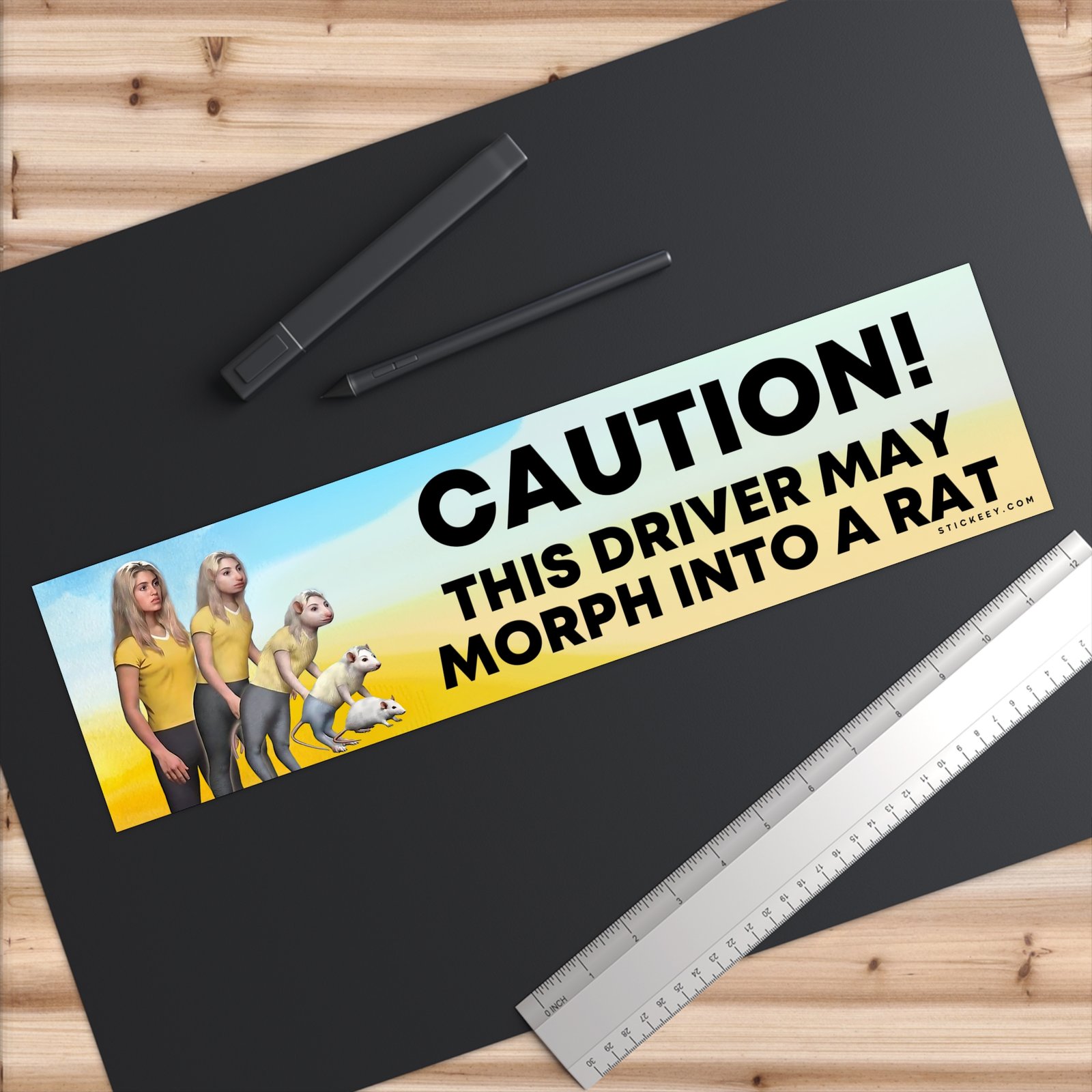 Caution! This Driver May Morph Into A Rat Bumper Sticker | Funny Rat Joke Car Decal for Bad Drivers