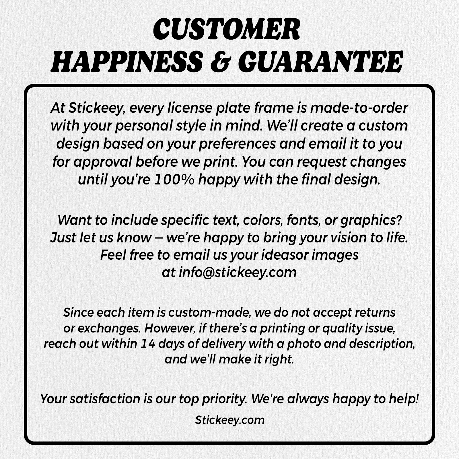 Note: We offer custom License Plate Frame designed to meet your specific needs. Additionally, contact us for a discount code when ordering more than 10 Products.