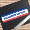 Spread a powerful message with this Dictatorship Bad 2024 Bumper Sticker. Perfect for those passionate about politics and social issues, this sticker gives off a rebellious and activist vibe. Ideal for sticking on cars, laptops, water bottles, and more. Great for activists, political enthusiasts, and those looking to make a statement. Relevant for protests, elections, and political movements.