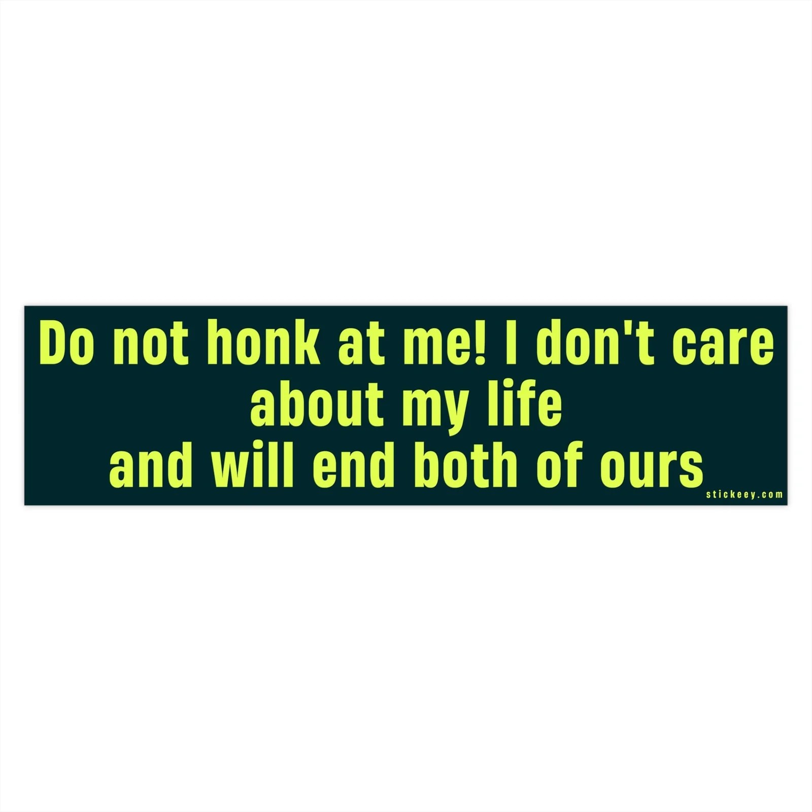 Do not honk at me! I don’t care about my life and will end both of ours Bumper Sticker