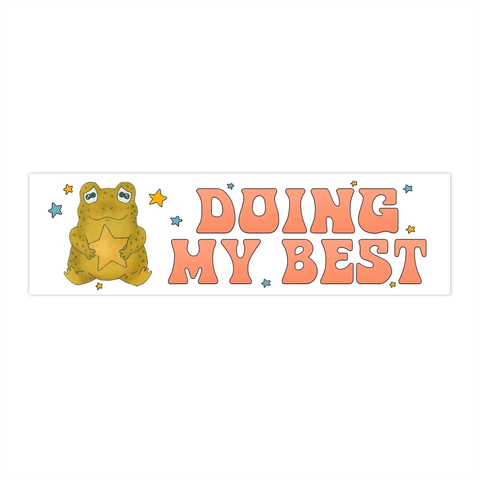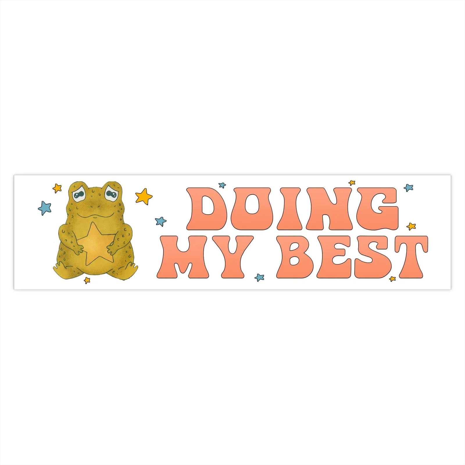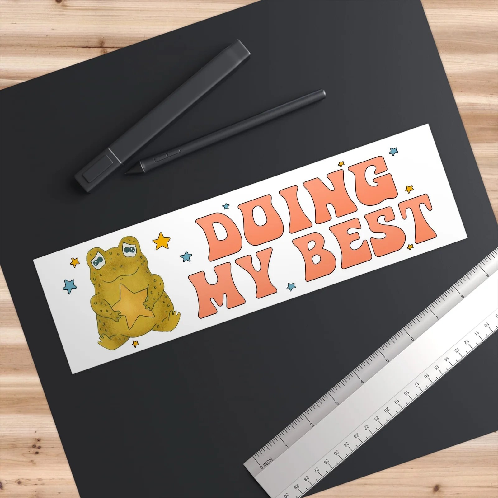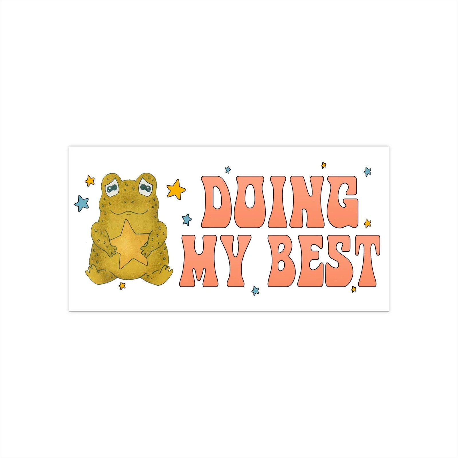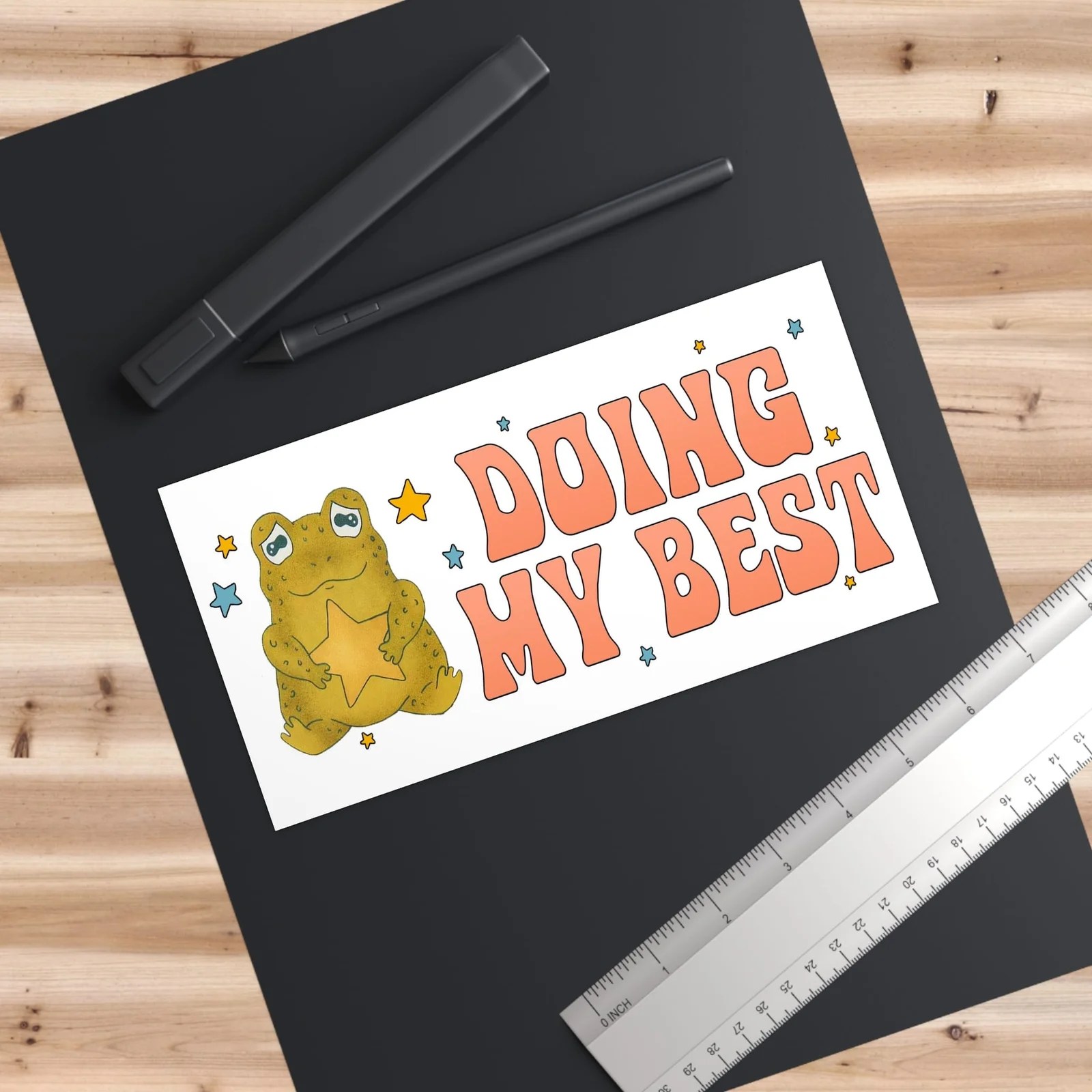 Celebrate positivity on the road with our Doing My Best Bumper Sticker! This uplifting sticker is perfect for anyone who wants to share a message of perseverance and encouragement. Made from durable, weather-resistant vinyl, it’s designed to withstand the elements while spreading good vibes. Easy to apply and remove without leaving sticky residue, it’s ideal for cars, trucks, or any surface that could use a motivational boost. Order your Doing My Best Bumper Sticker today and let your optimism shine!