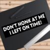 Don’t Honk At Me I Left On Time Bumper Sticker | Funny Sarcastic Car Decal