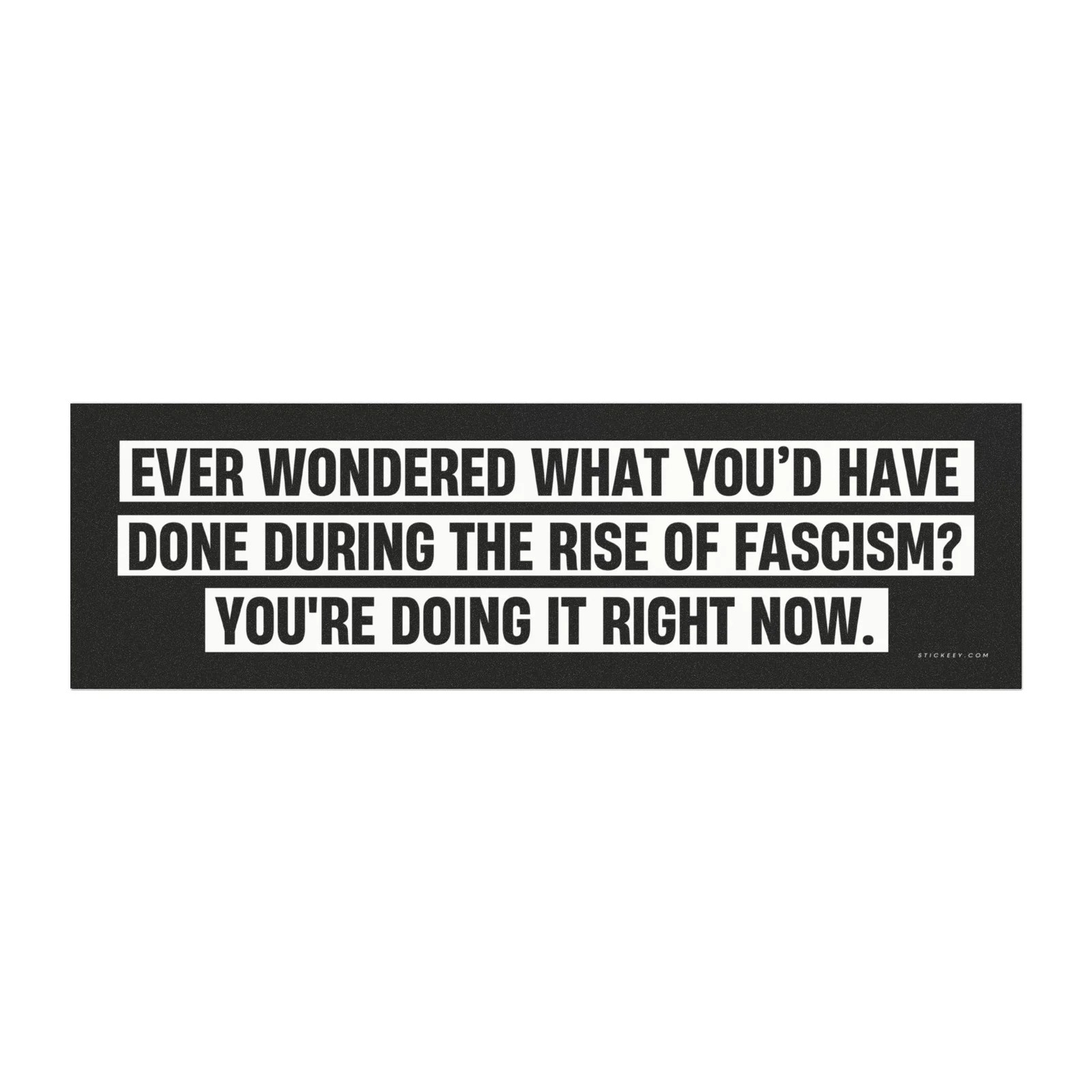 Make a powerful statement with the “Ever Wondered What You’d Have Done During the Rise of Fascism?” magnet sticker. Designed to spark thought and conversation, this durable, weatherproof magnet is perfect for cars, fridges, lockers, or any magnetic surface. A bold way to highlight the importance of awareness, activism, and standing up for democracy, this magnet serves as a reminder that history is shaped by those who take action. Whether for yourself or as a gift, this magnet is a meaningful addition to any space.
