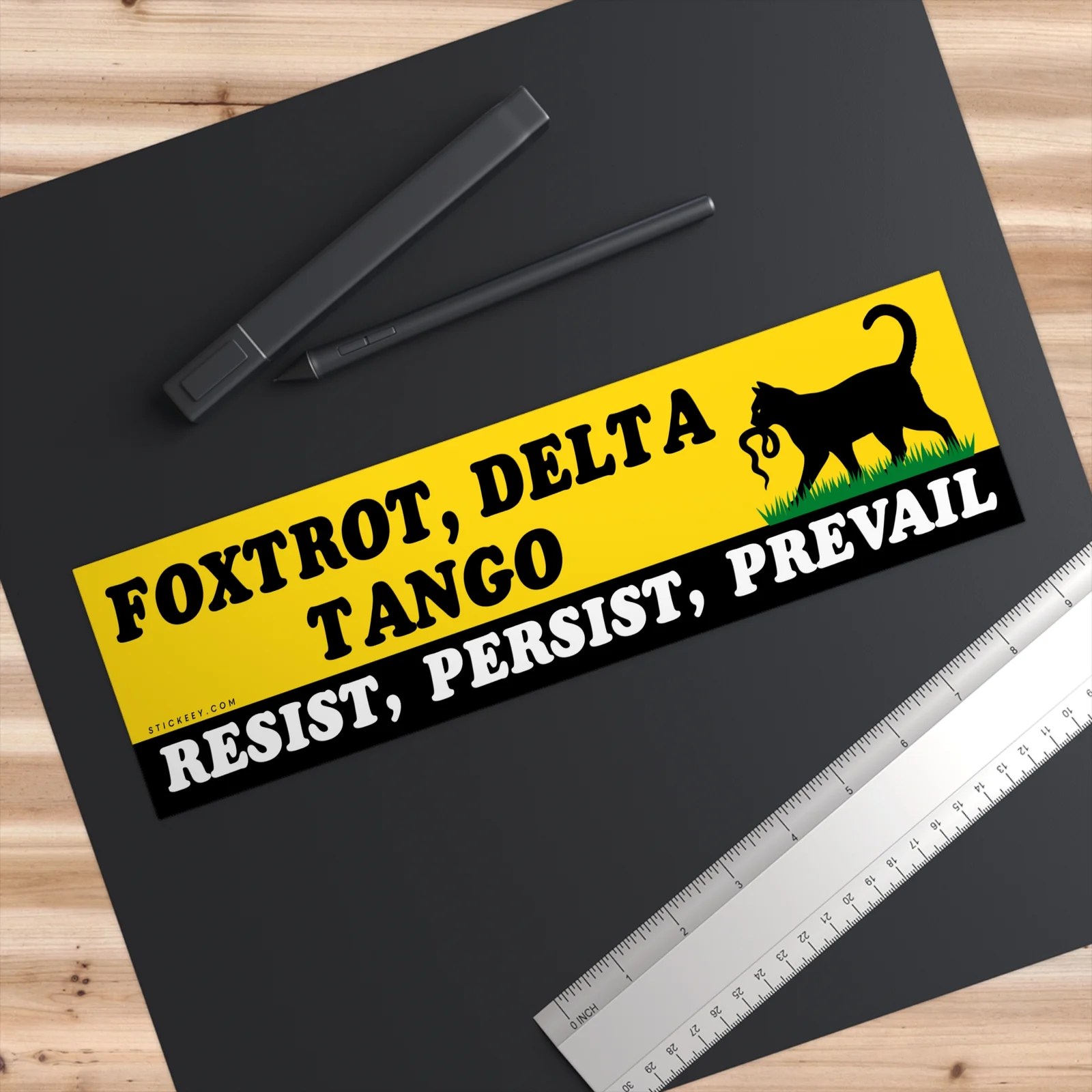 Foxtrot Delta Tango – Resist, Persist, Prevail – Political Bumper Sticker