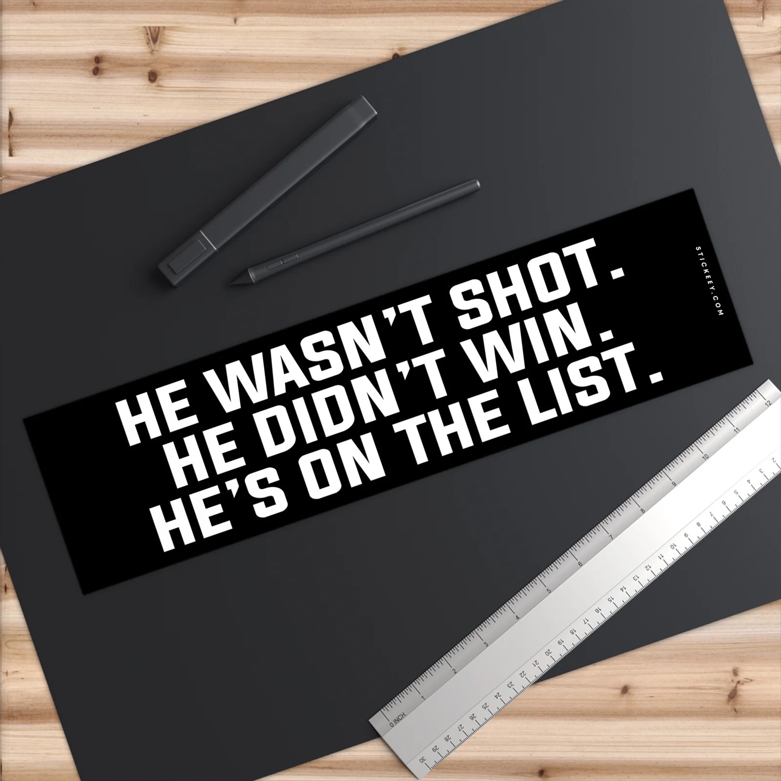 He Wasn’t Shot He Didn’t Win He’s On The List bumper sticker
