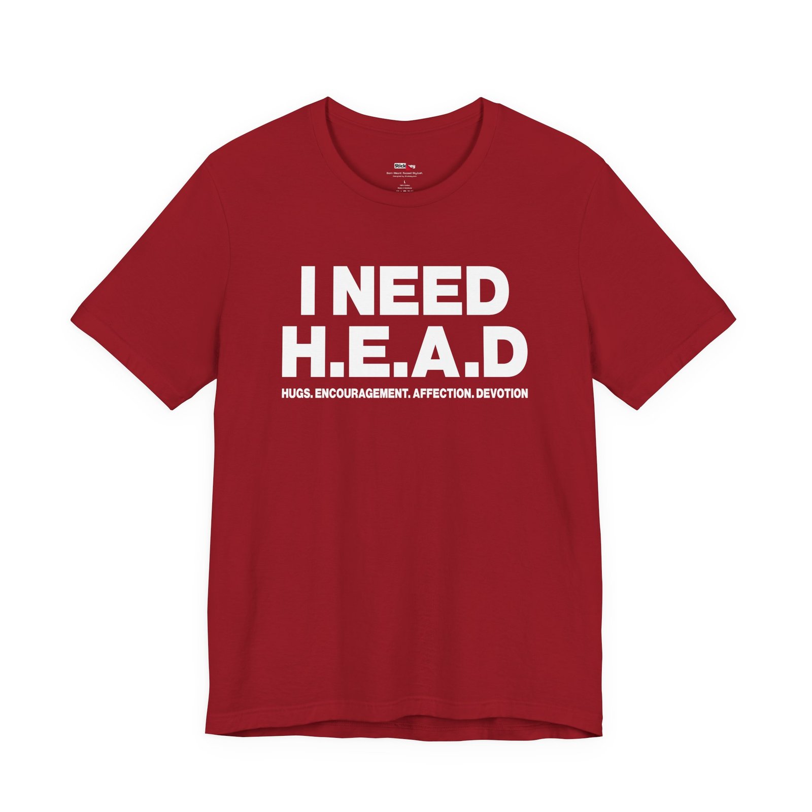 Turn heads and spark laughs with this “I Need H.E.A.D. – Hugs, Encouragement, Affection, Devotion” funny t-shirt. The clever acronym makes this shirt equal parts witty and cheeky, perfect for anyone with a sense of humor. Designed with soft, comfortable fabric, this tee works for casual wear, parties, or as a playful gift. Great for men and women who love sarcasm, humor, and wordplay in their everyday style.