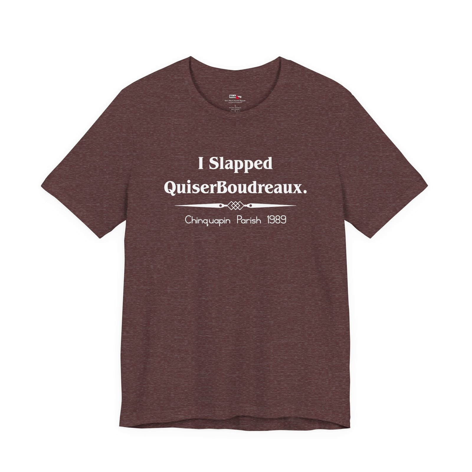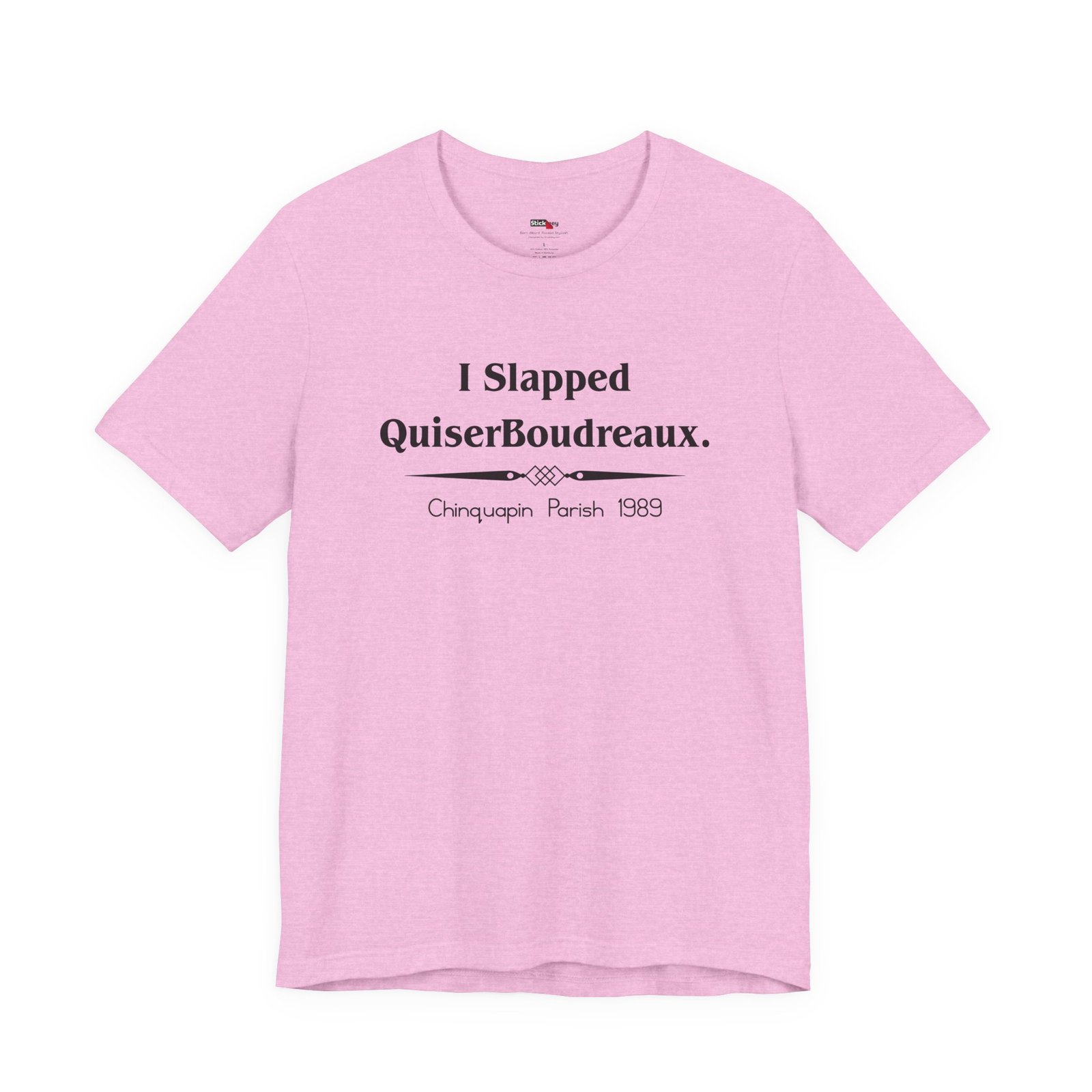 Own the moment with this “I Slapped Quiser Boudreaux. Chinquapin Parish 1989” t-shirt. Inspired by the unforgettable quote from Steel Magnolias, this tee delivers Southern sass with a punch of humor. It’s perfect for fans of classic films, sharp dialogue, and legendary one-liners. The design keeps it simple, the quote says it all. Soft, breathable, and made for everyday wear — this shirt makes a great gift or a bold addition to your own collection.
