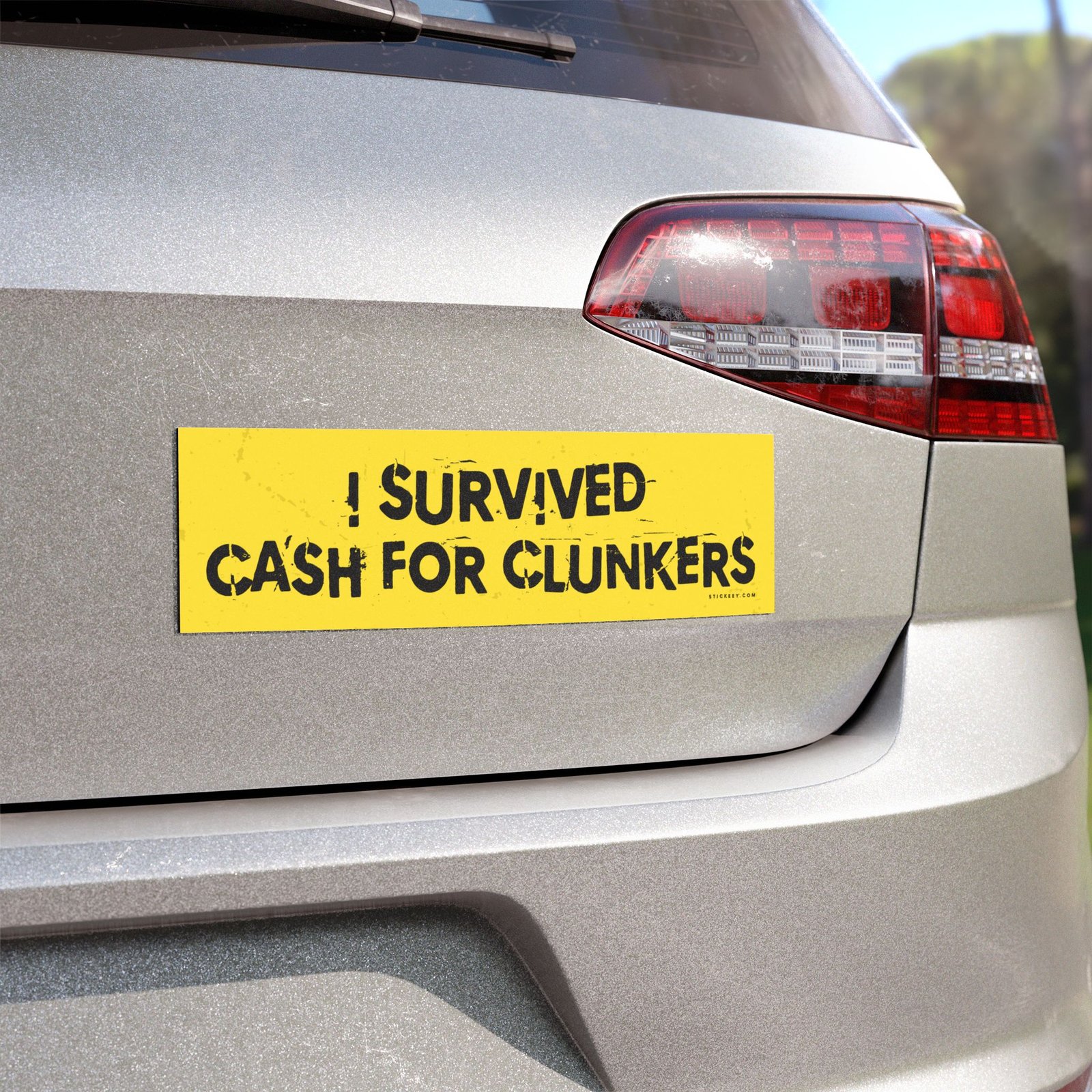 I Survived Cash For Clunkers Magnet Sticker – Funny Retro Car Bumper Decal – Vintage Auto Enthusiast Gift