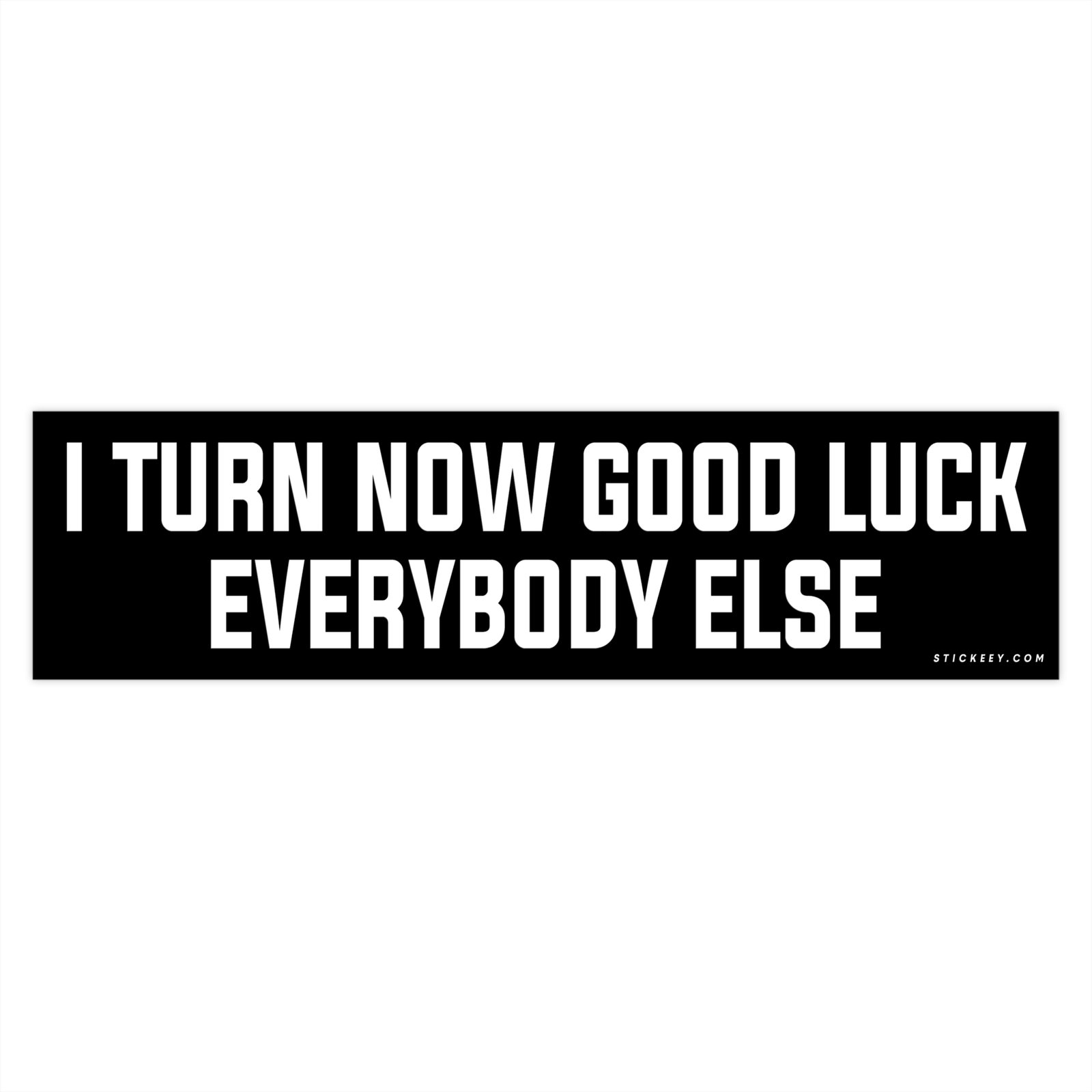 I Turn Now Good Luck Everybody Else Bumper Sticker