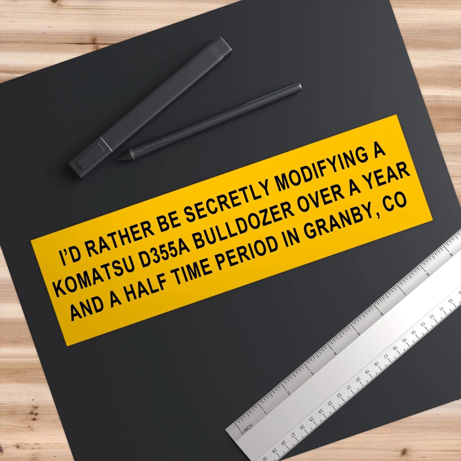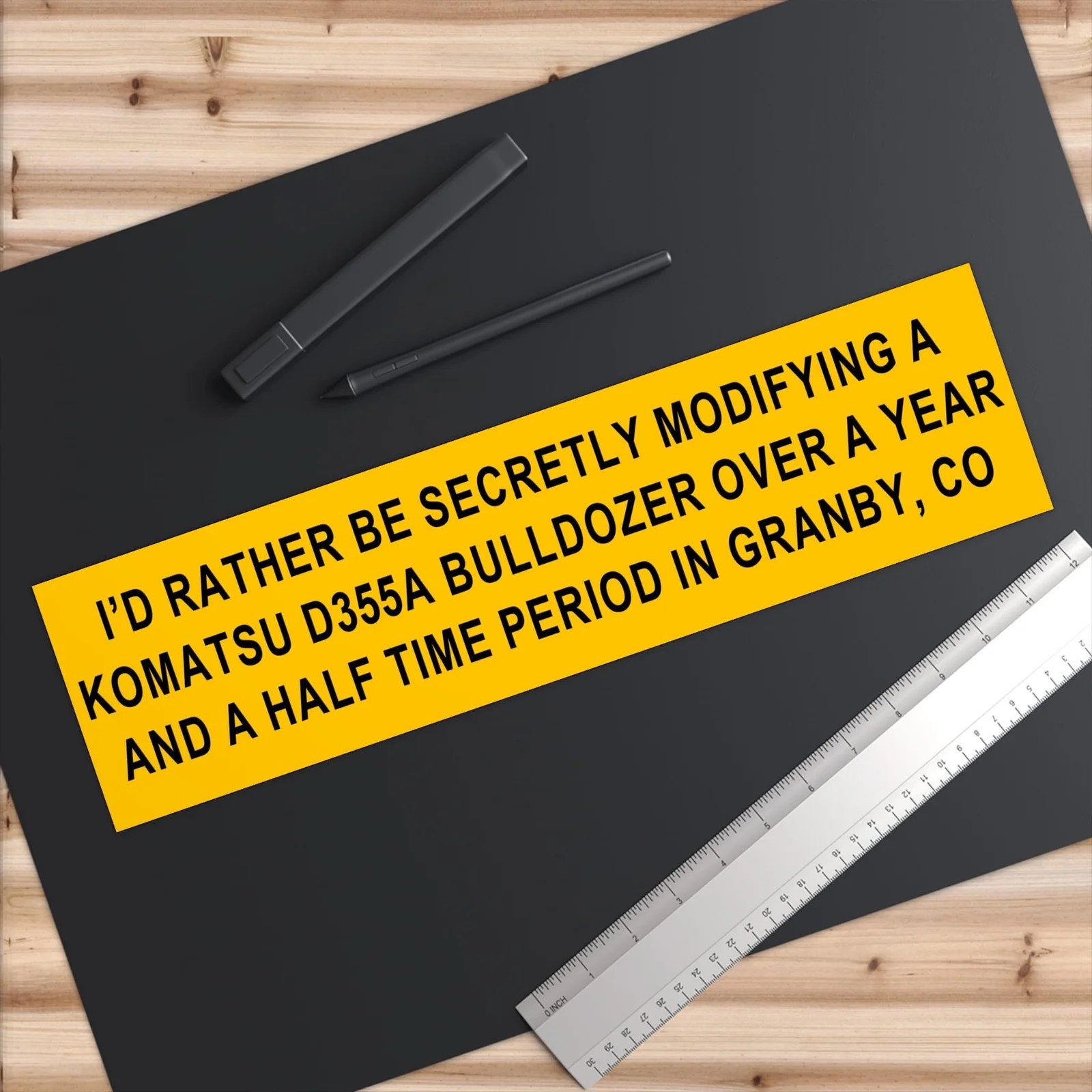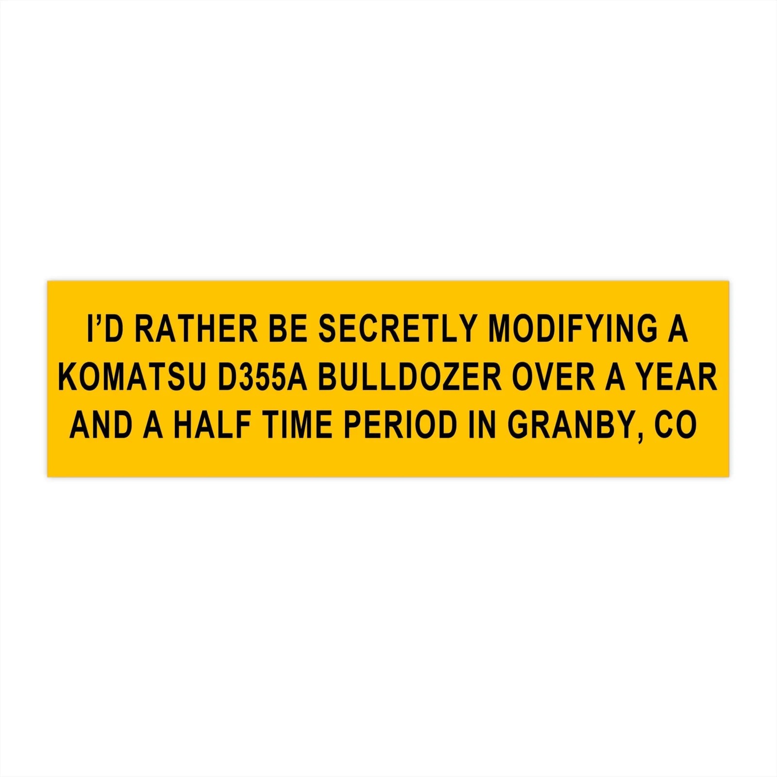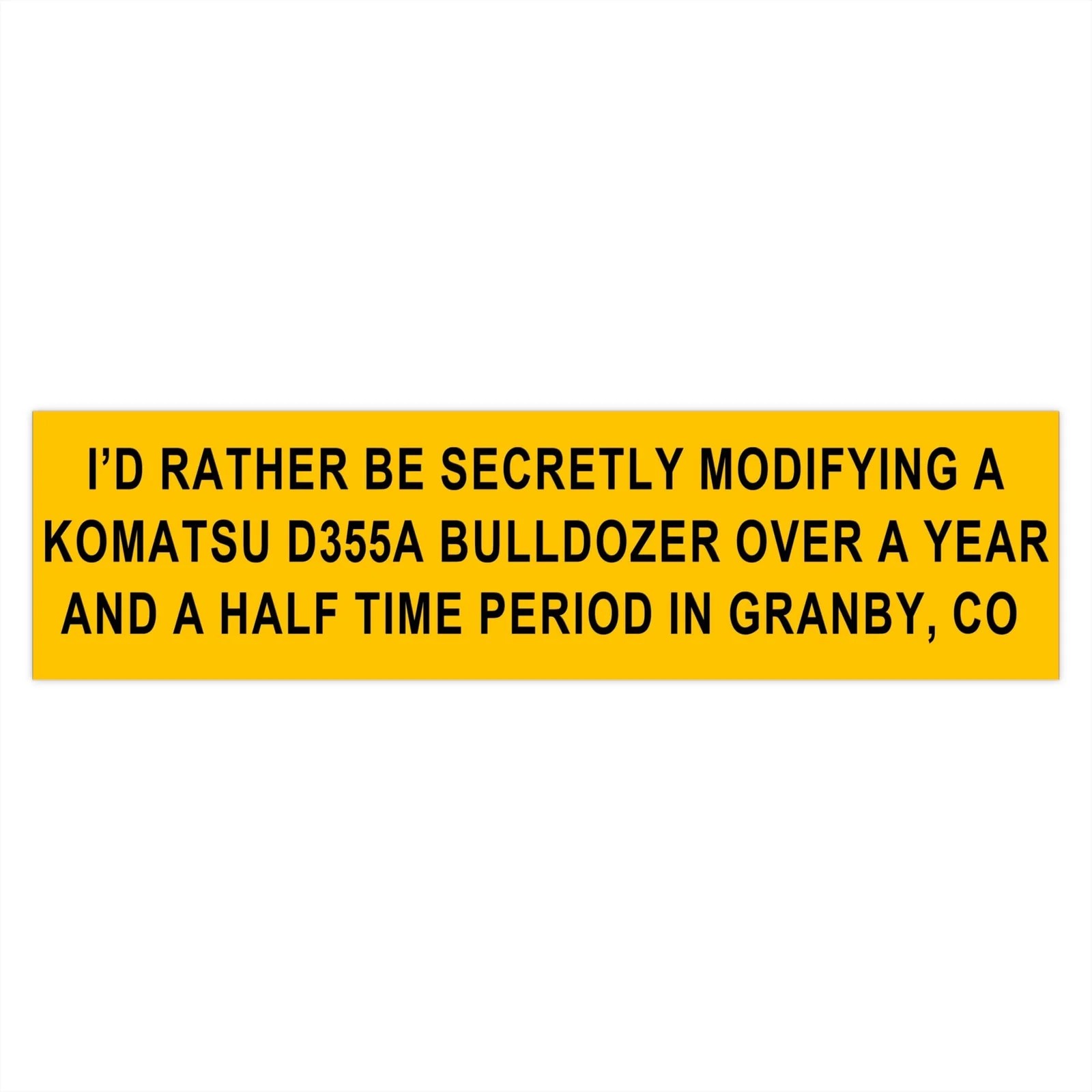 I’d Rather Be Secretly Modifying A Komatsu D355a Bulldozer Over A Year And A Half Time Period In Granby, Co Bumper Sticker