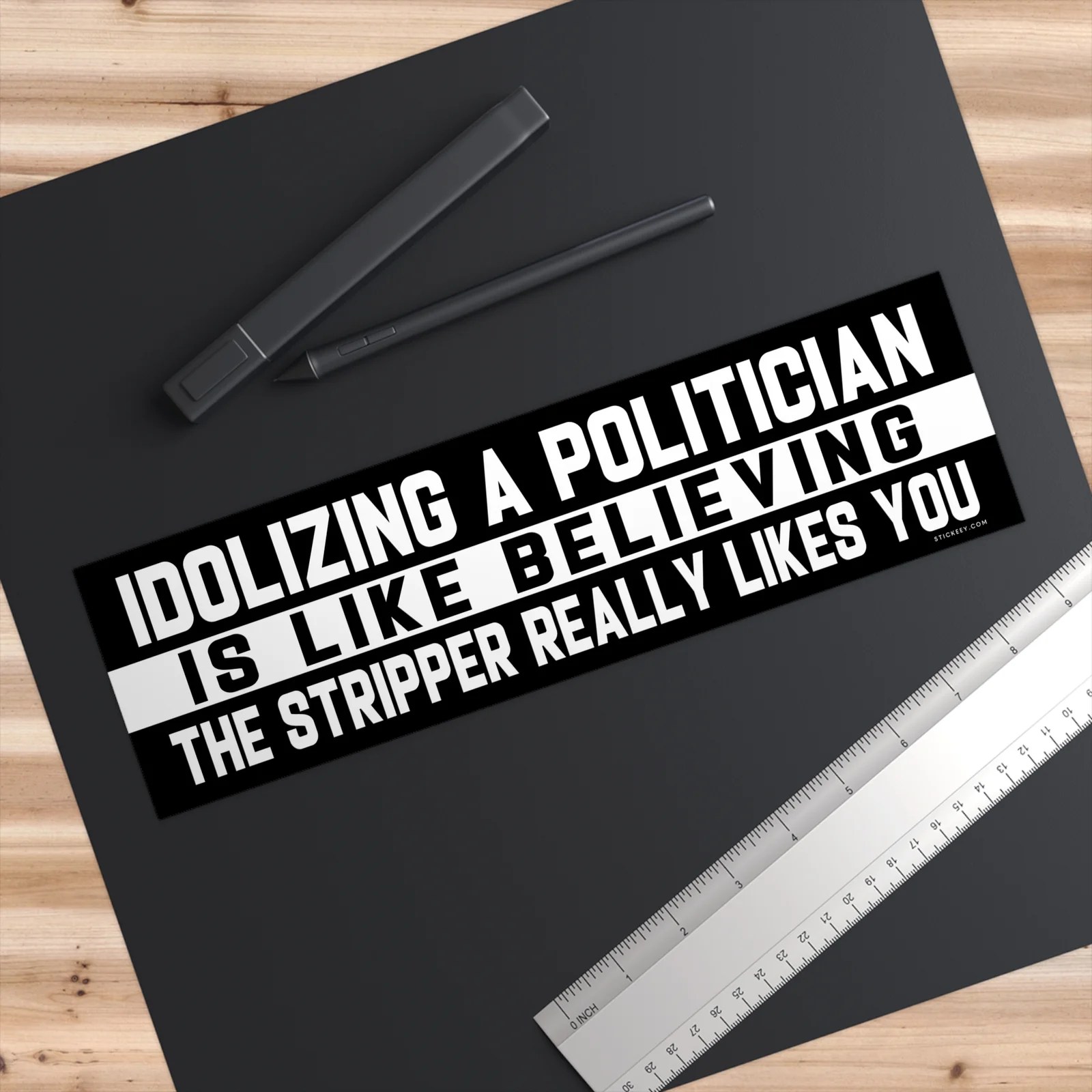 Idolizing A Politician Is Like Believing The Stripper Likes You Bumper Sticker