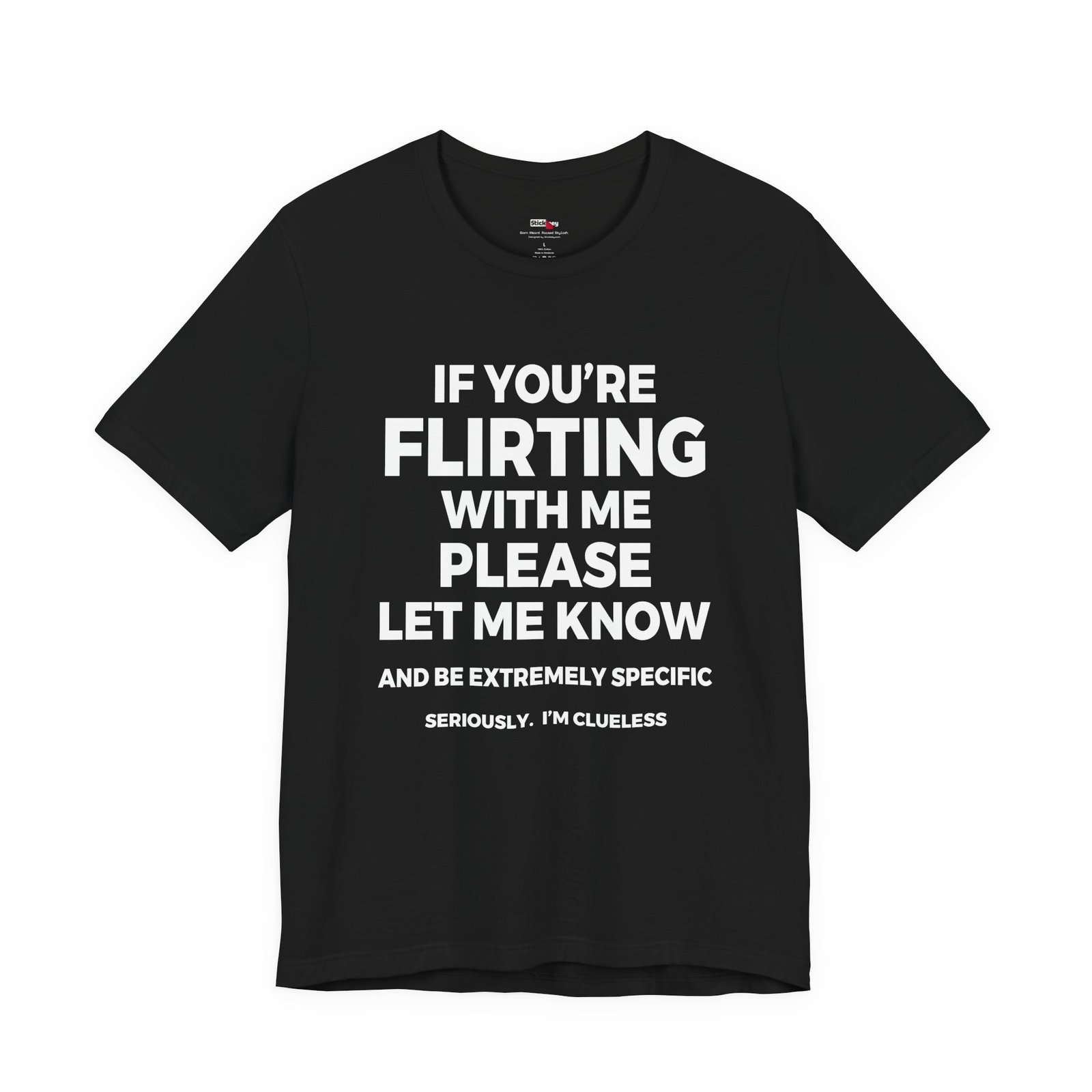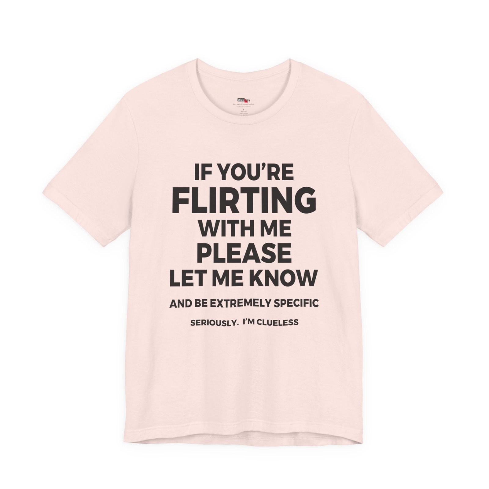 Wear your social struggle with pride in this “If You’re Flirting With Me Please Let Me Know And Be Extremely Specific Seriously. I’m Clueless” t-shirt. Perfect for anyone who never catches hints, this shirt blends self-deprecating humor with everyday style. The bold statement makes people laugh while giving them a clear message. Soft, casual, and comfortable, it’s a great gift for awkward friends, shy introverts, or anyone who needs flirting spelled out.