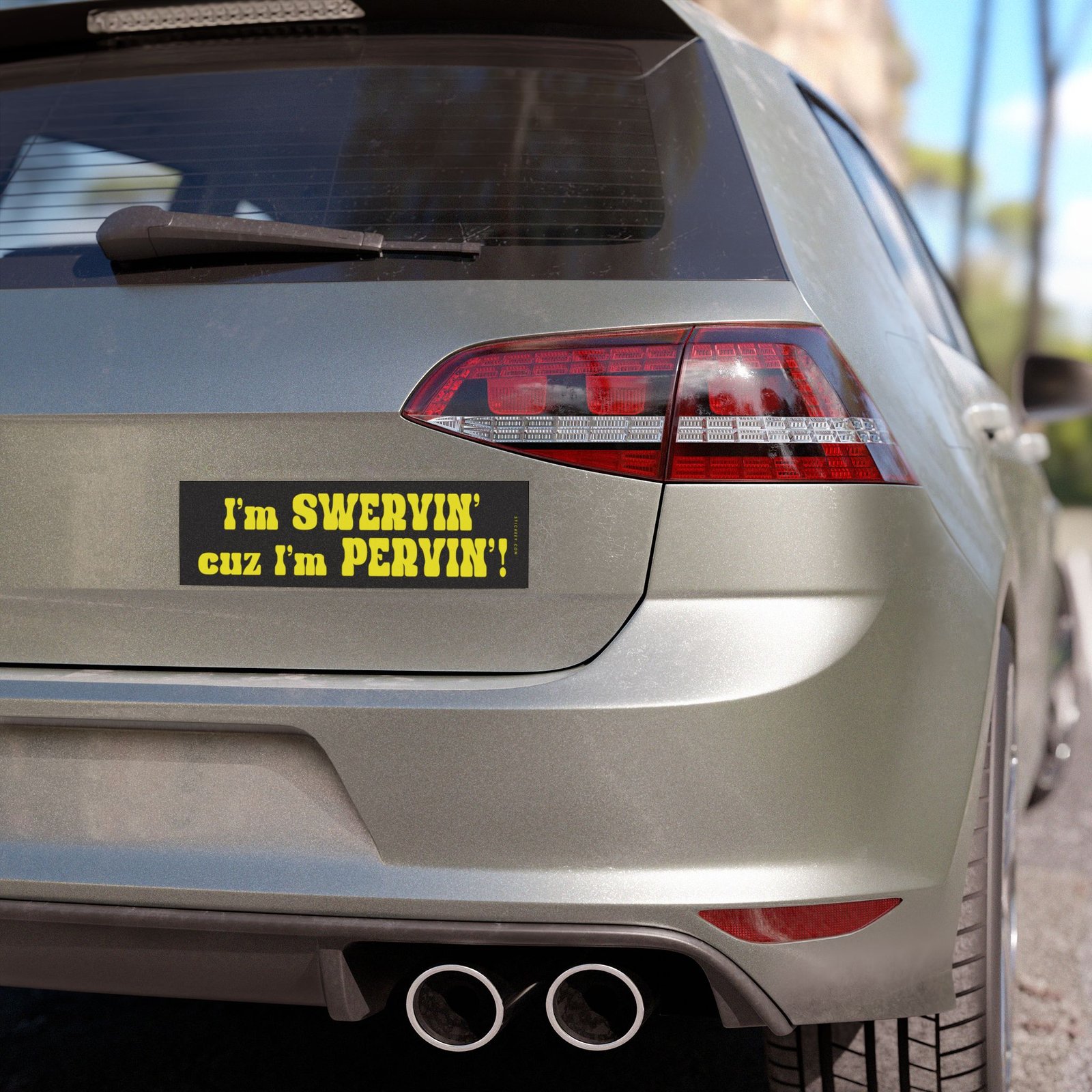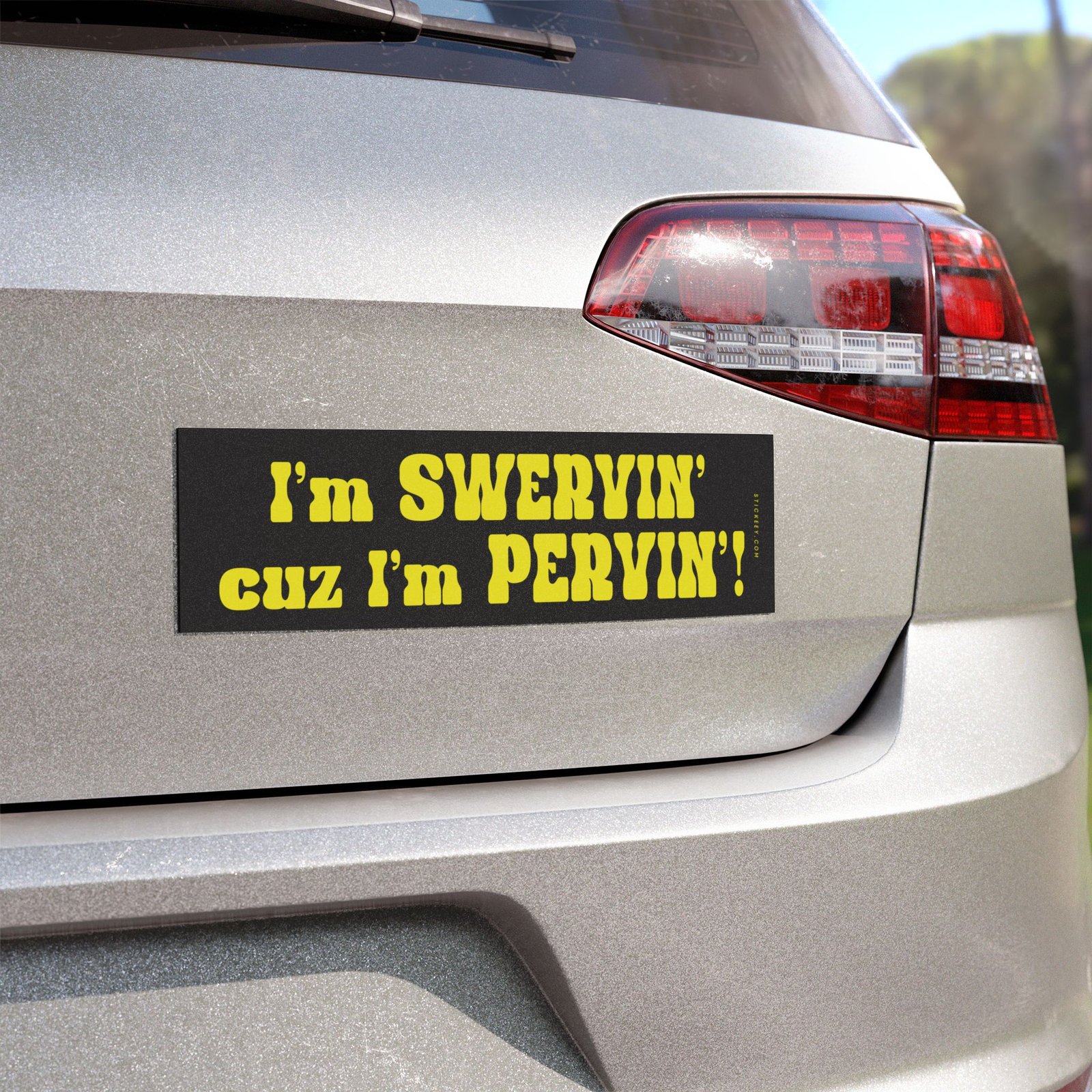I’m Swervin’ Cuz I’m Pervin’ Magnet Sticker – Funny Creepy Driver Car Magnet