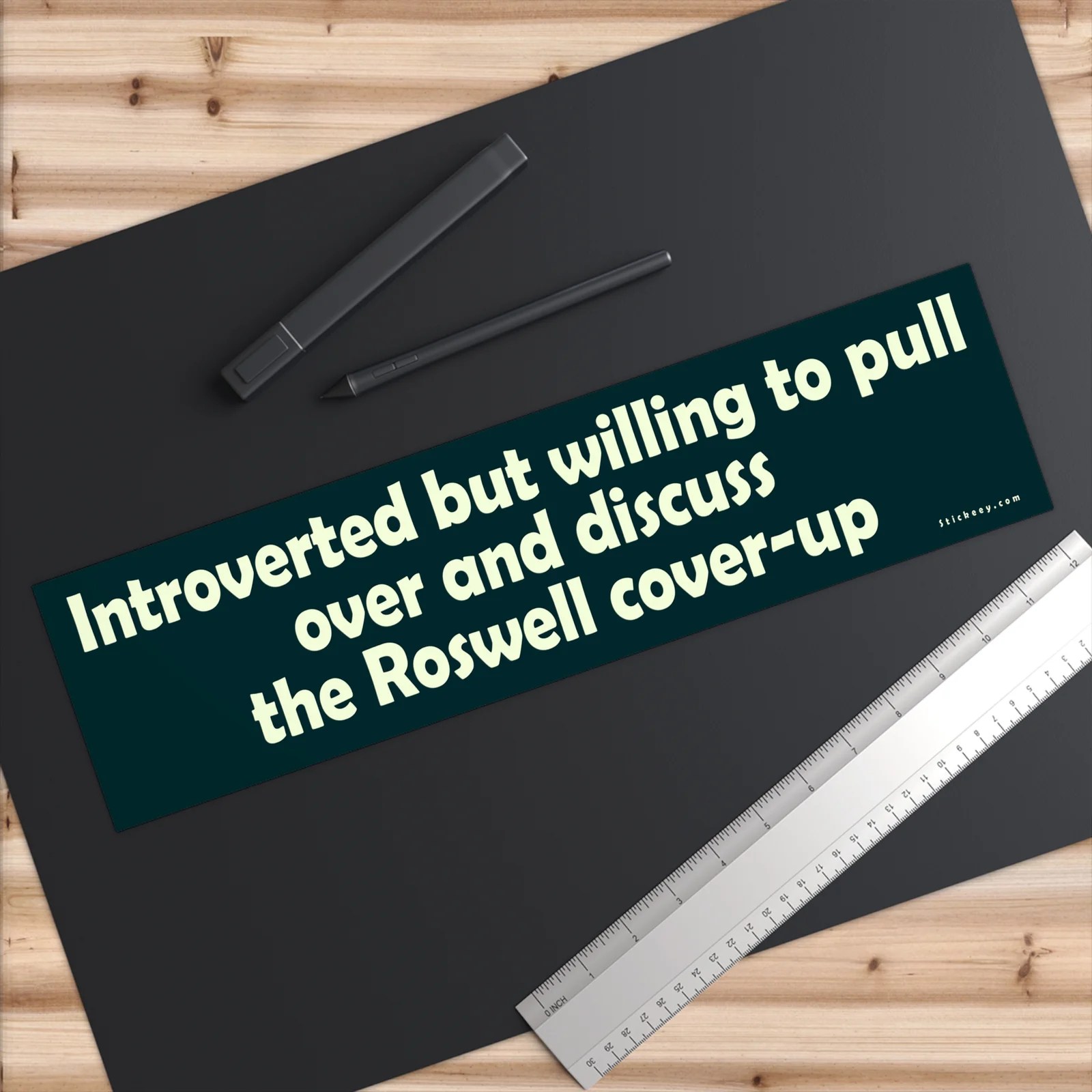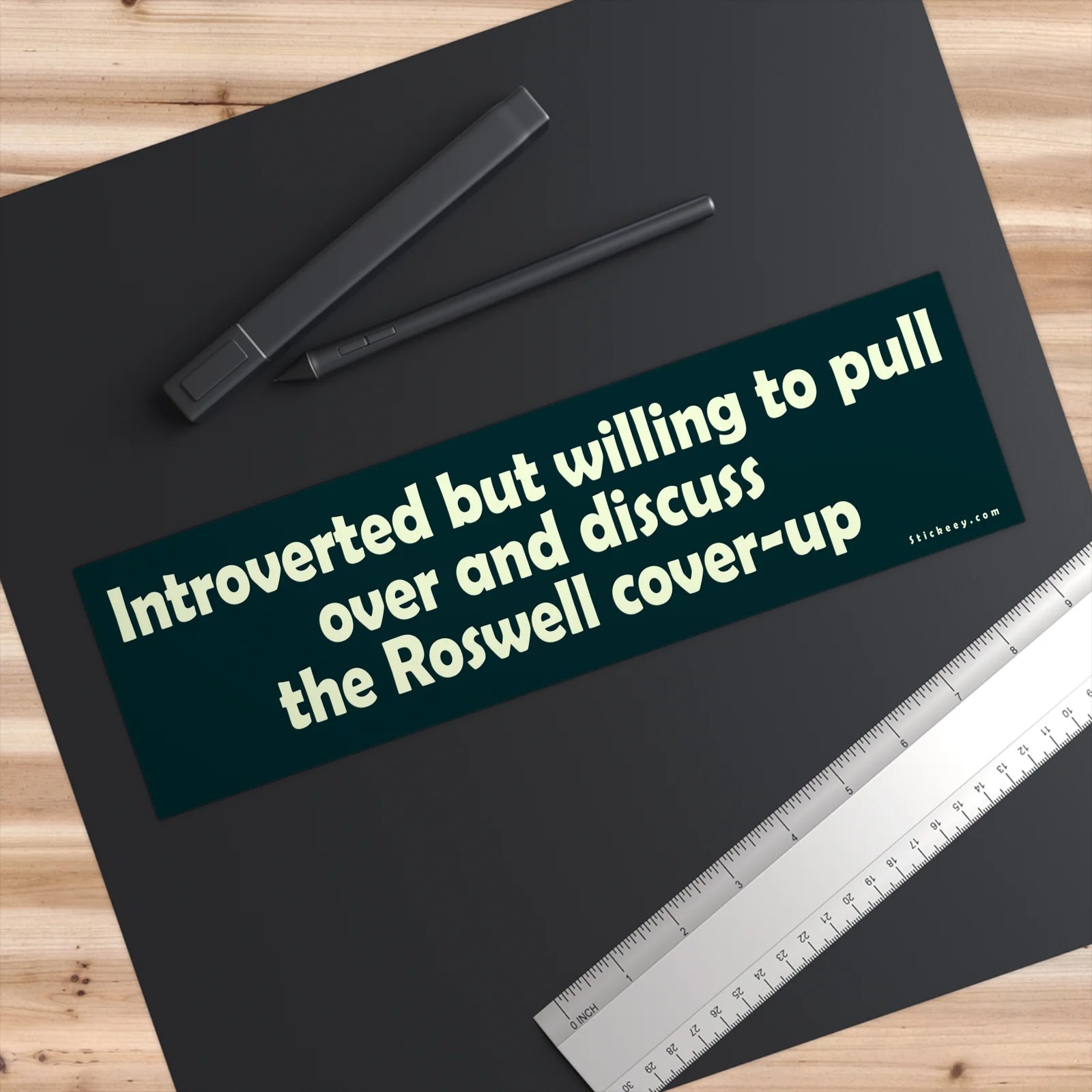 Introverted But Willing To Pull Over And Discuss The Roswell Cover-up Bumper Sticker