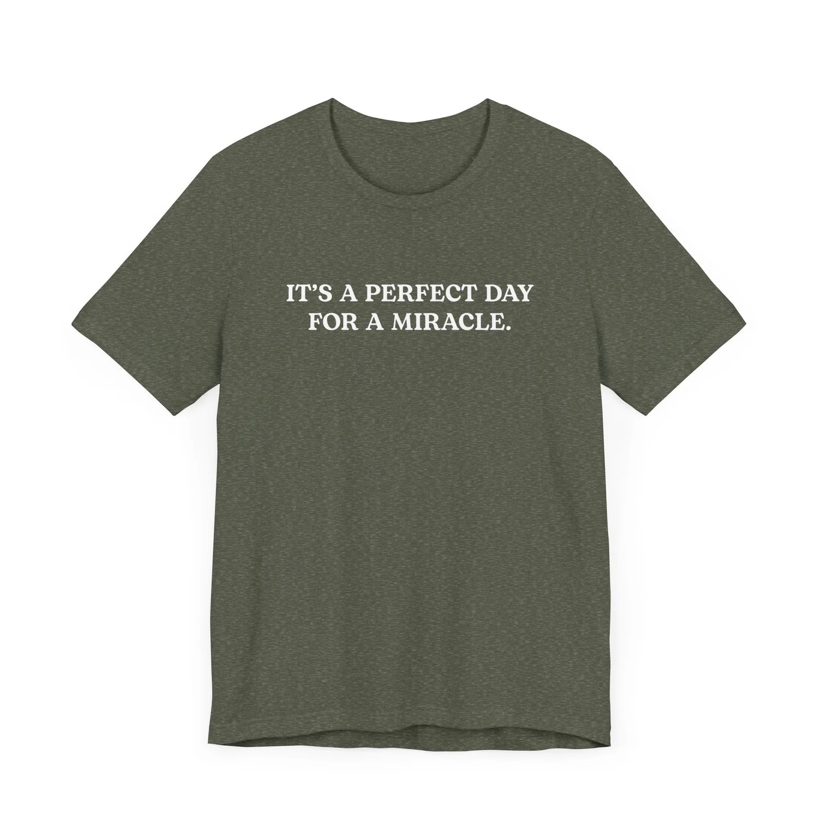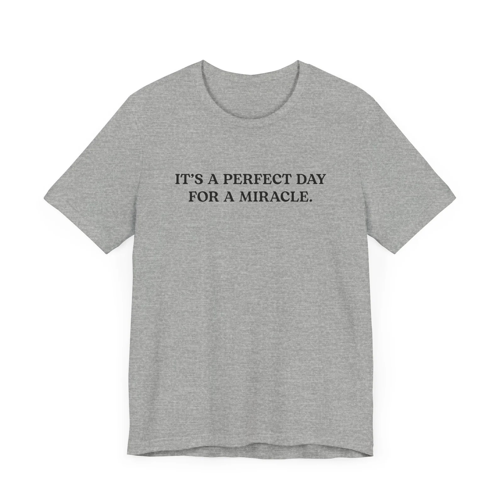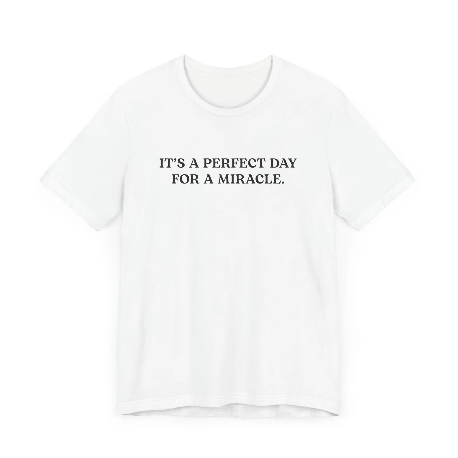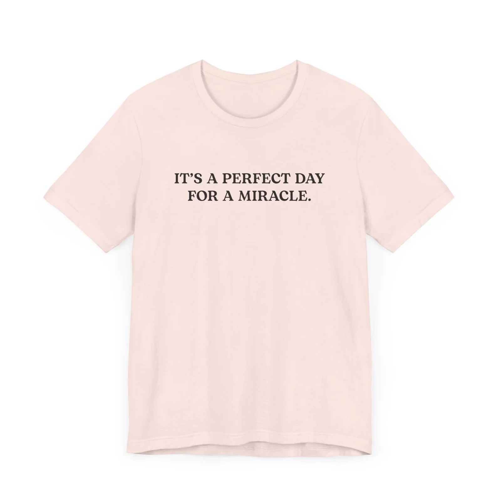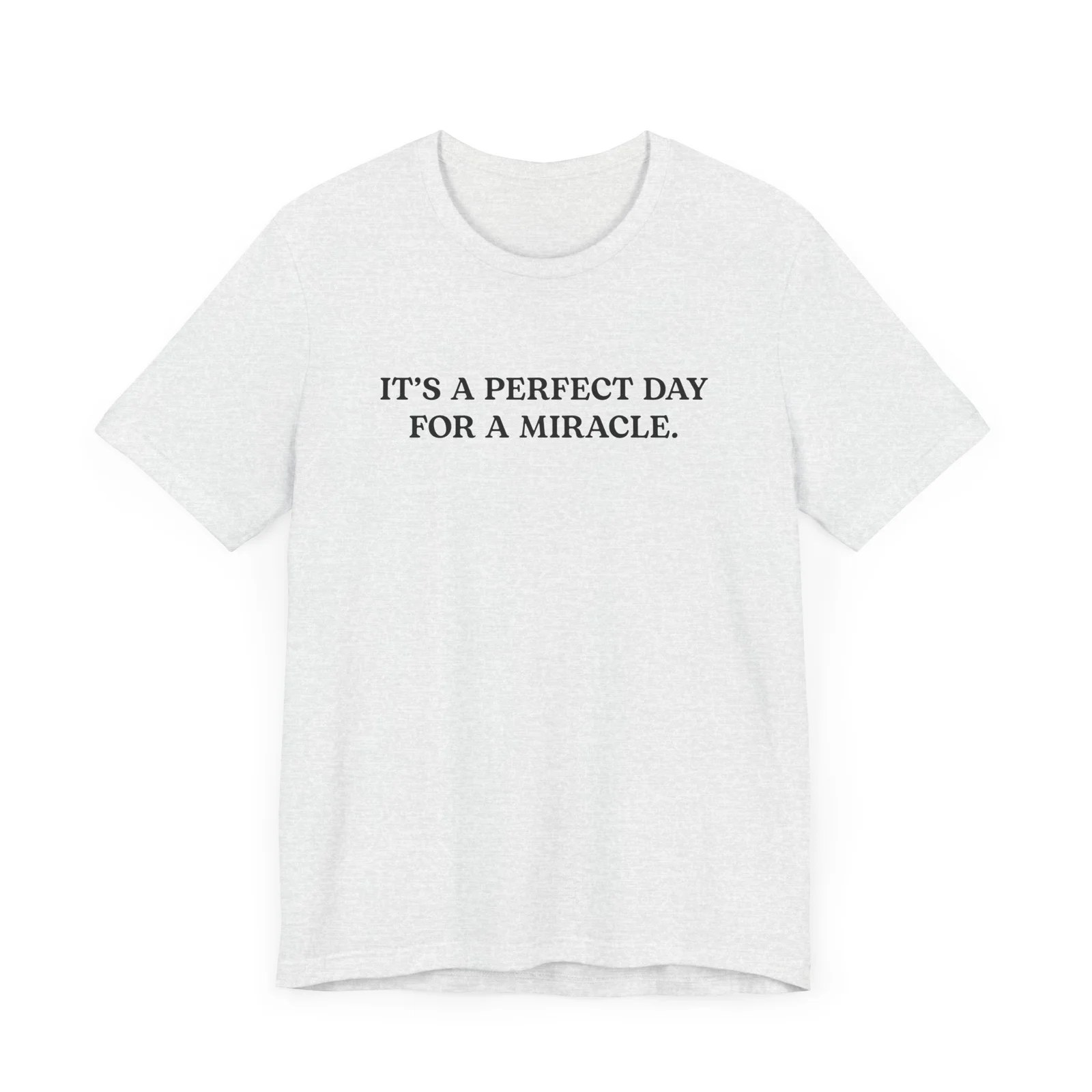 Start your day with hope and good vibes in our “It’s A Perfect Day For A Miracle” Shirt – a feel-good graphic tee that radiates positivity and faith. Whether you’re manifesting good things, sharing spiritual encouragement, or just love inspiring quotes, this soft and stylish shirt is a perfect daily reminder that something amazing could happen at any moment. Great for faith-based fashion lovers, motivational outfit seekers, or anyone who believes in everyday miracles. Ideal as a gift of hope, or just a personal pick-me-up!
