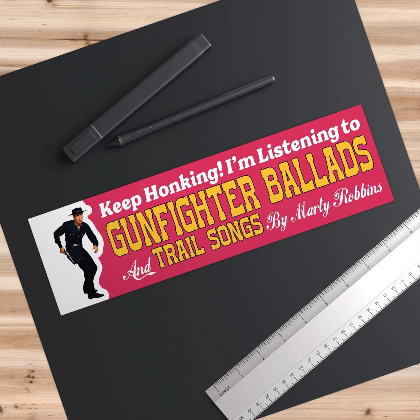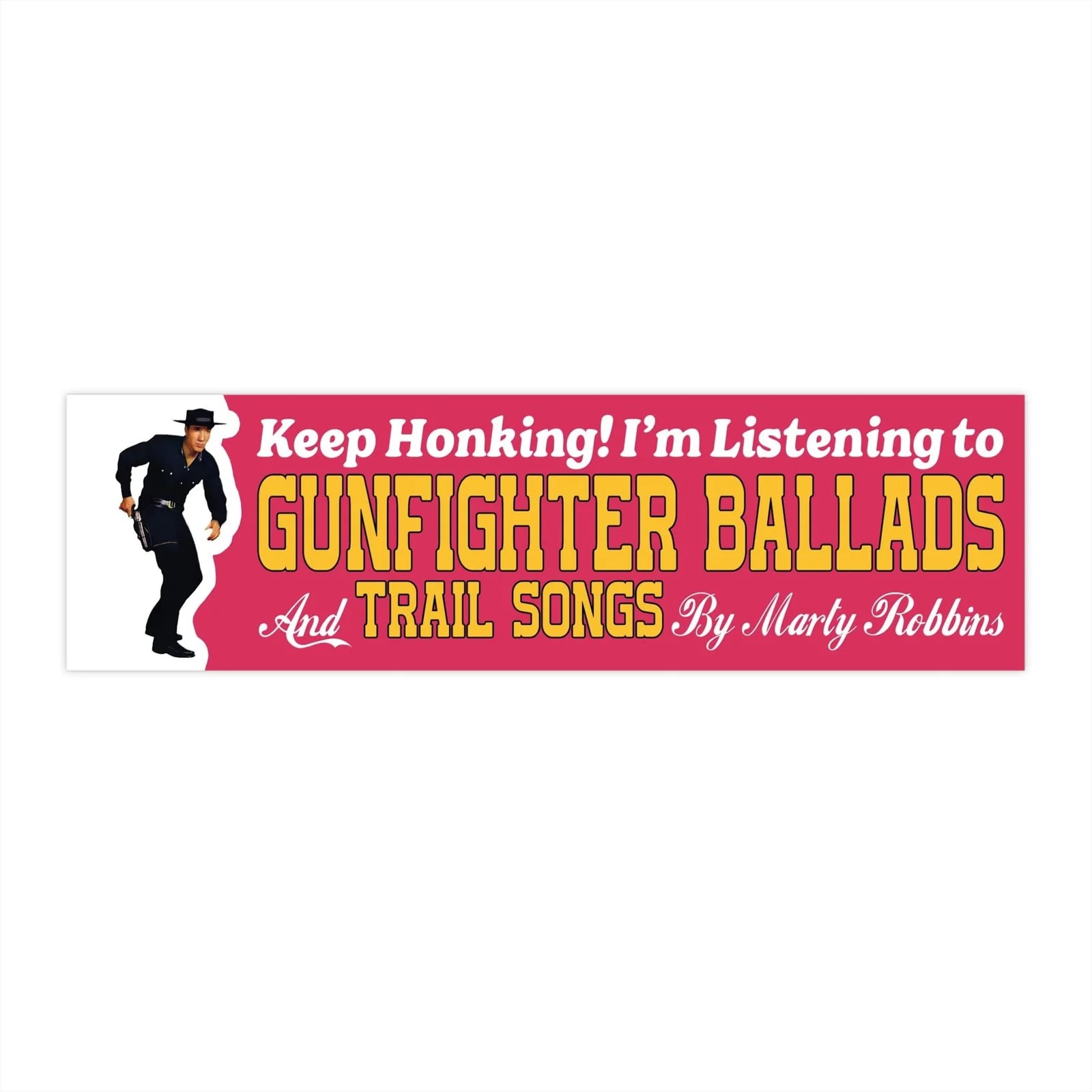 Keep Honking! I’m Listening to Gunfighter Ballads and Trail Songs by Marty Robbins Bumper Stickers