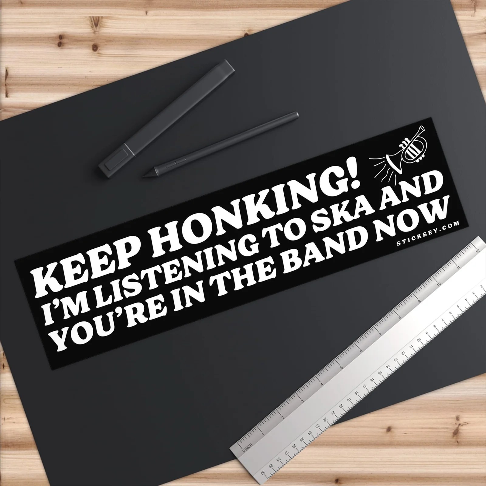 Keep Honking! I’m Listening To Ska And You’re In The Band Now Bumper Sticker