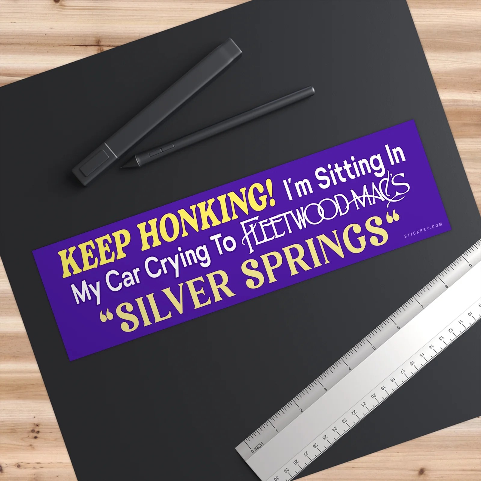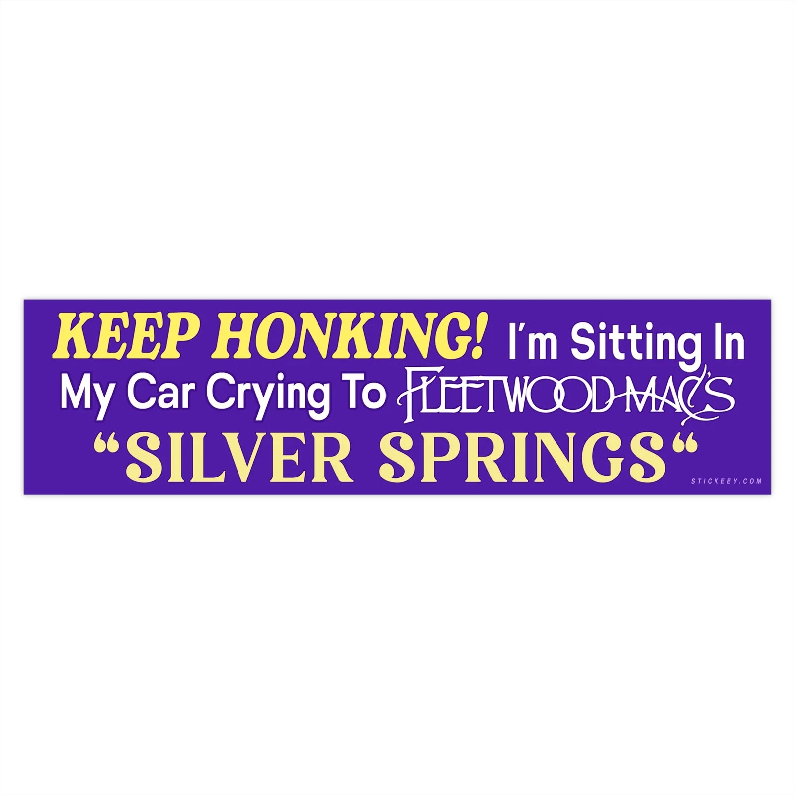 Be the first to review “Keep Honking! I’m Sitting In My Car Crying To Fleetwood Mac’s “Silver Springs” Bumper Sticker” Cancel reply
