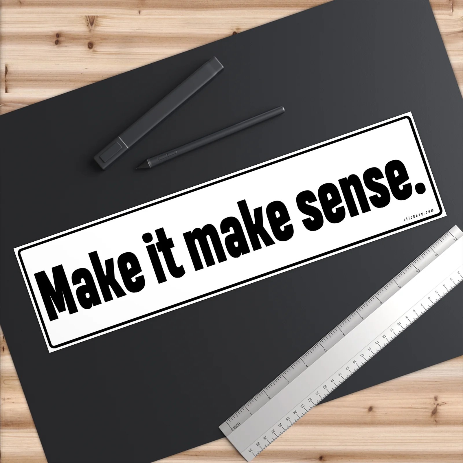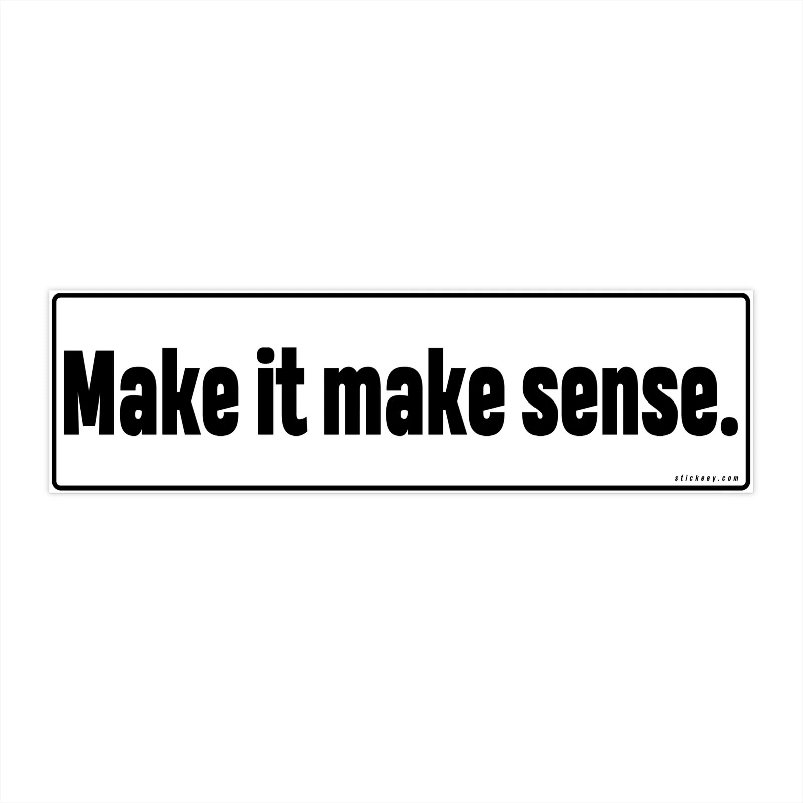 Express your frustration and wit with the “Make It Make Sense” bumper sticker. Perfect for those moments when life, politics, or society just doesn’t add up, this sticker delivers a bold yet simple message that resonates universally. Made with durable, weatherproof vinyl, it’s designed to stay vibrant and intact on your car, laptop, or any smooth surface.