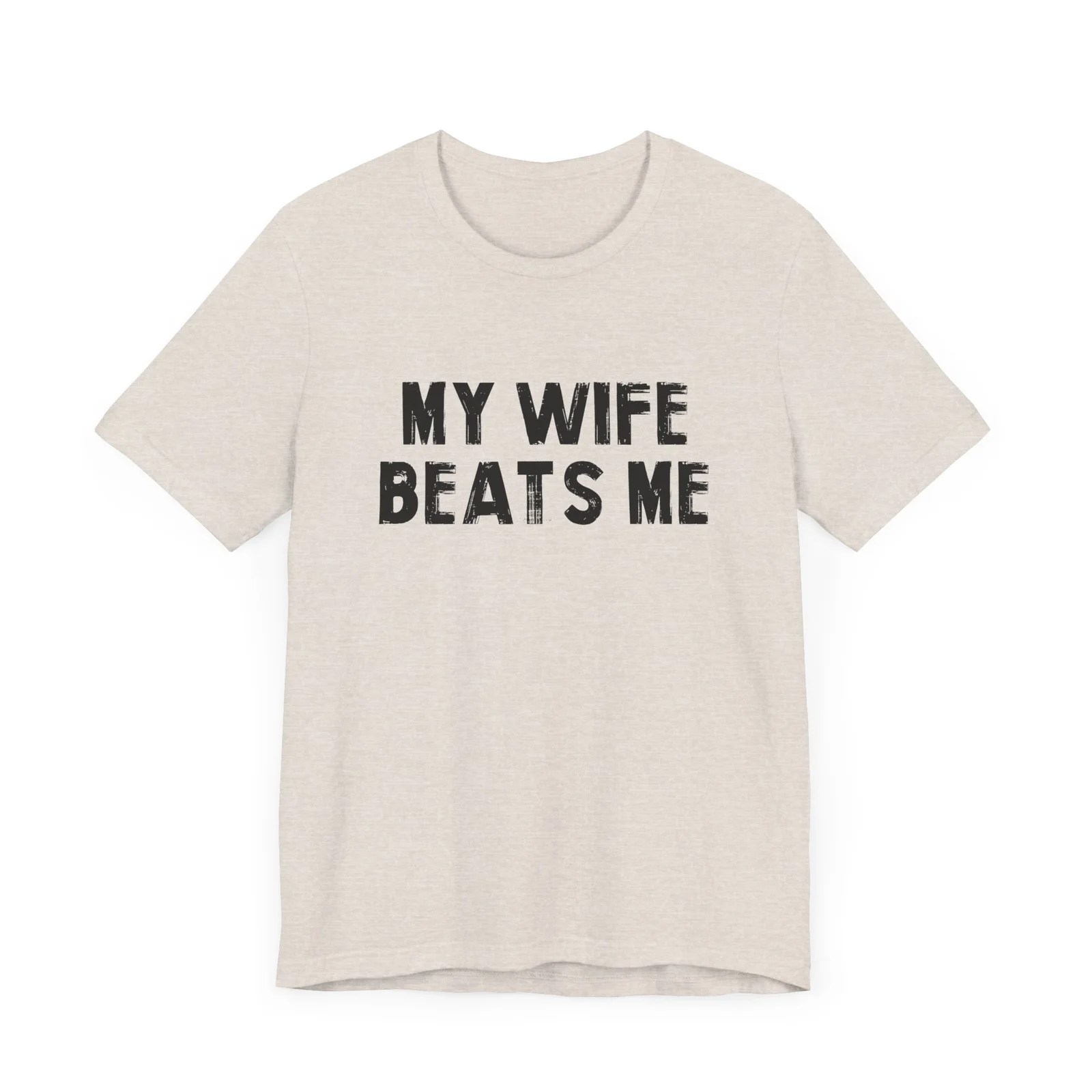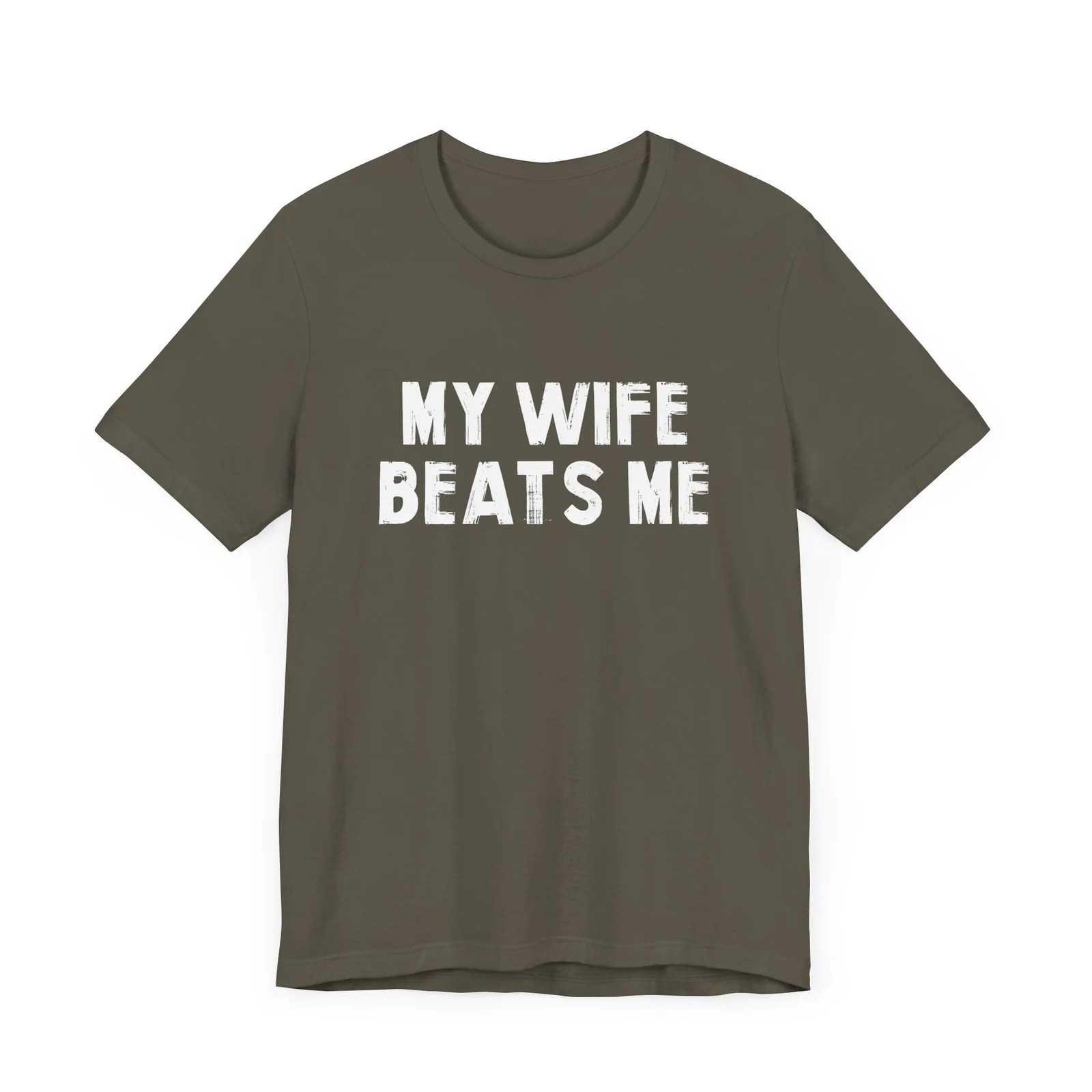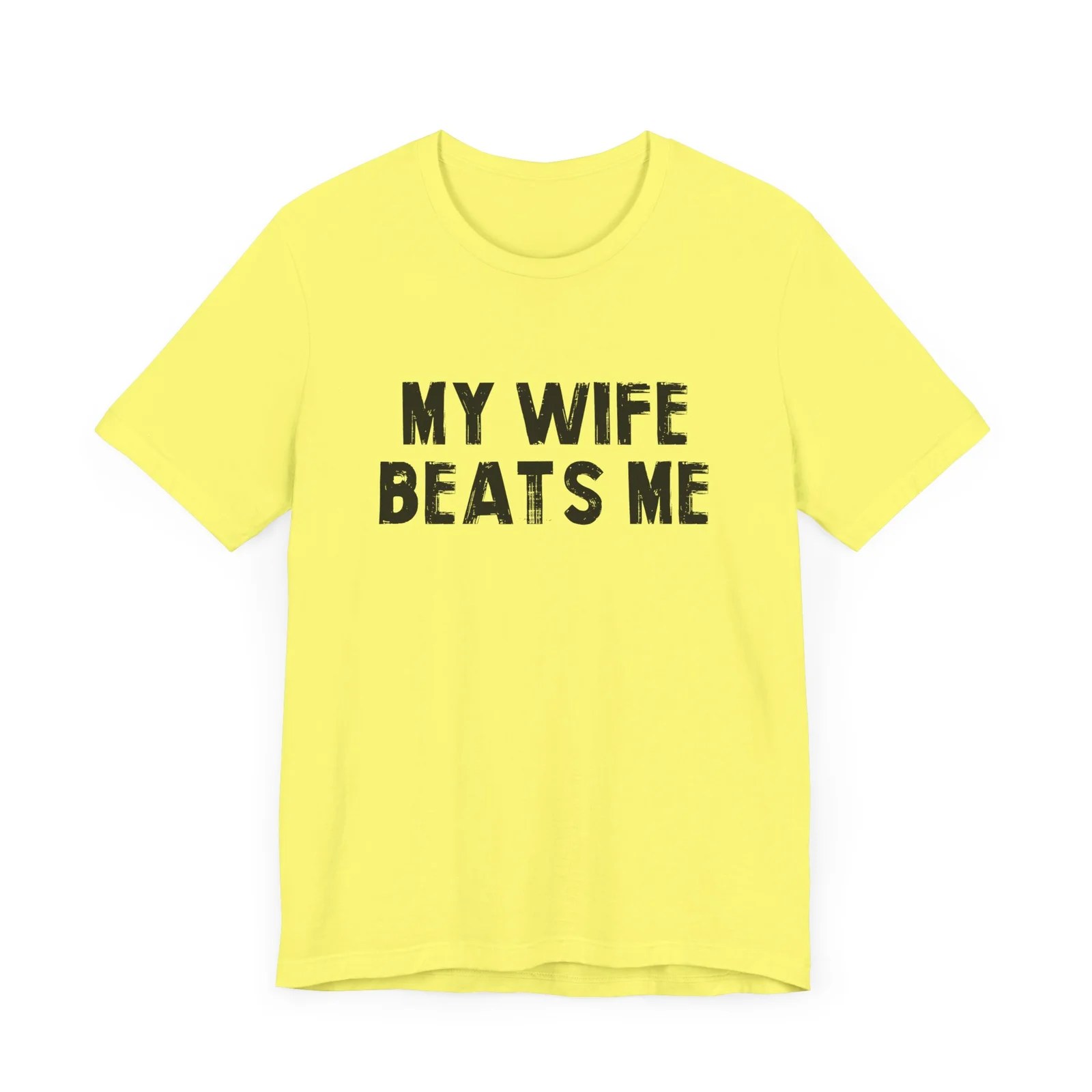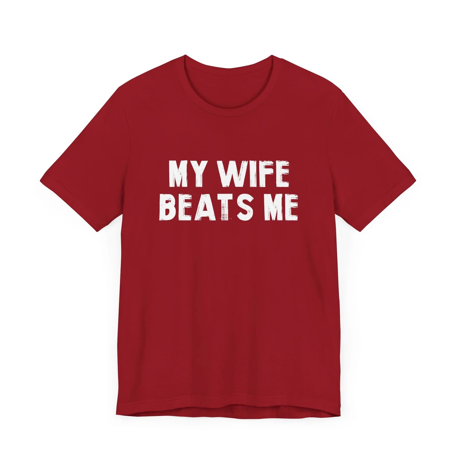 Make people do a double take with our bold and hilarious “My Wife Beats Me” T-Shirt – where the punchline is all about games, cards, or video battles! This clever funny graphic tee uses classic dark humor and a twist of irony to spark laughs and conversations. Perfect for husbands with a great sense of humor, gamers, or card-playing couples, this novelty shirt is printed on ultra-soft cotton for comfort and style. Whether you’re out with your wife or cracking up friends at game night, this shirt is guaranteed to deliver laughs. A great gag gift for husbands, bachelor parties, or couples who love a good joke.