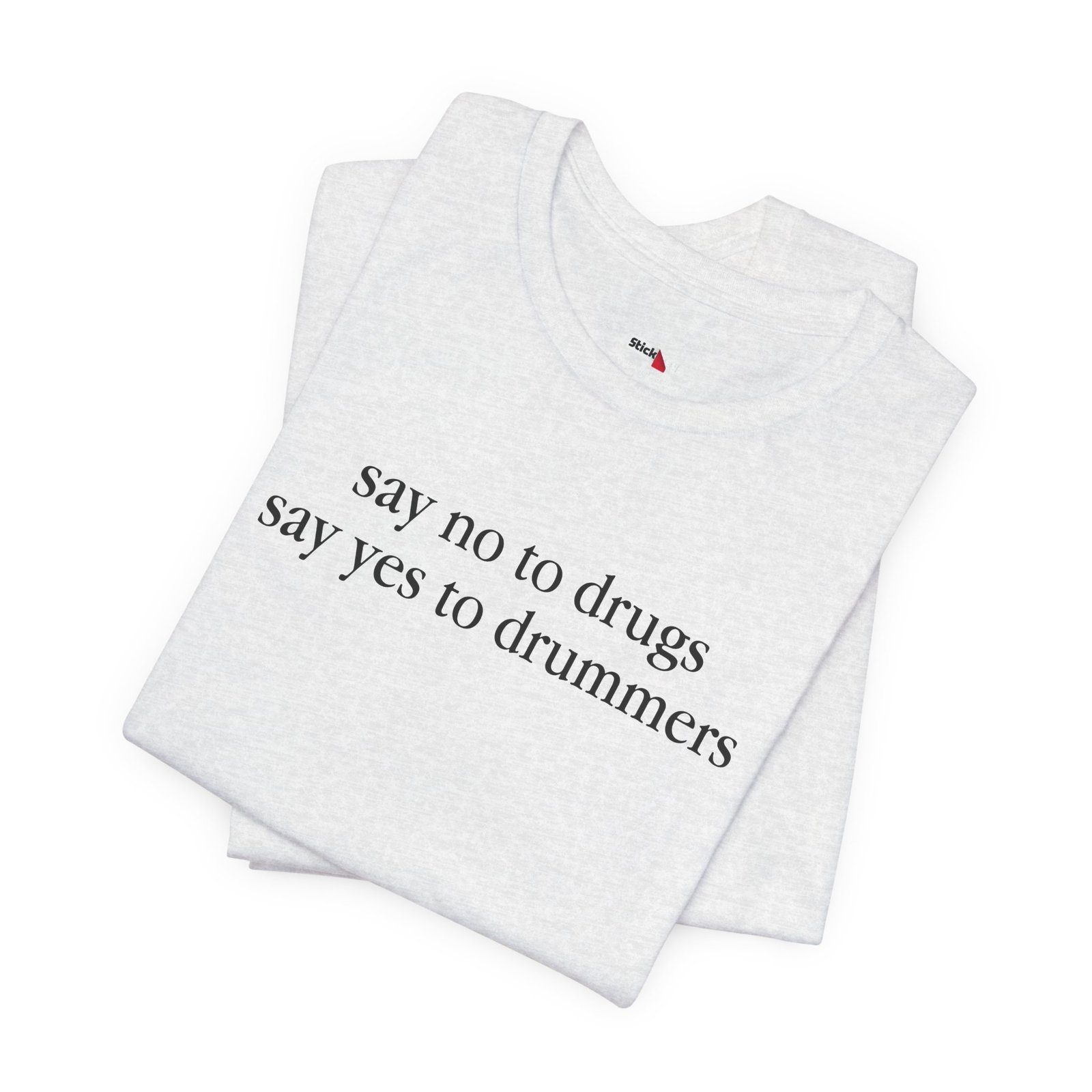 Say No to Drugs Say Yes to Drummers Funny Music T-Shirt