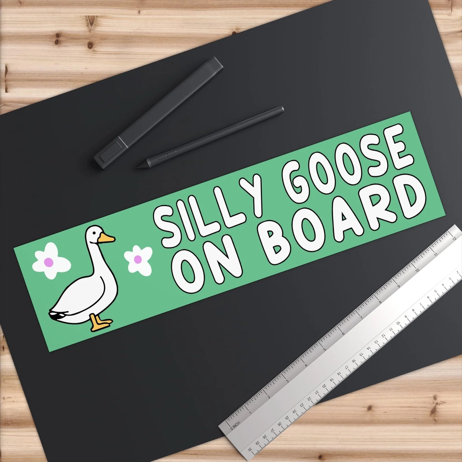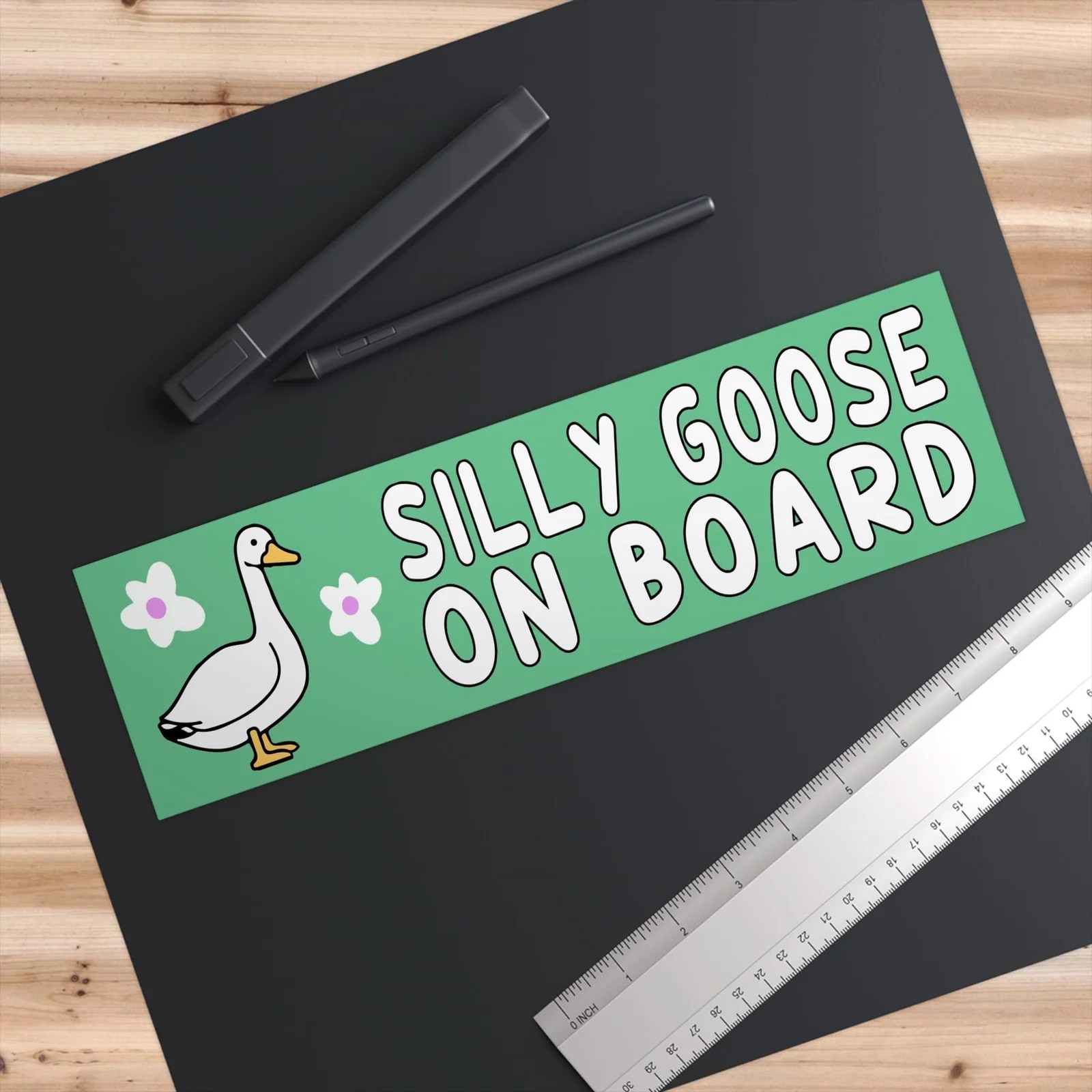Add a touch of humor to your vehicle with our Silly Goose On Board Bumper Sticker! Perfect for families and fun-loving drivers, this durable, weather-resistant vinyl sticker is designed to withstand the elements while bringing smiles to everyone on the road. Easy to apply and remove without sticky residue, it’s ideal for cars, trucks, or any surface needing a playful warning. Order your Silly Goose On Board Bumper Sticker today and let your personality shine!