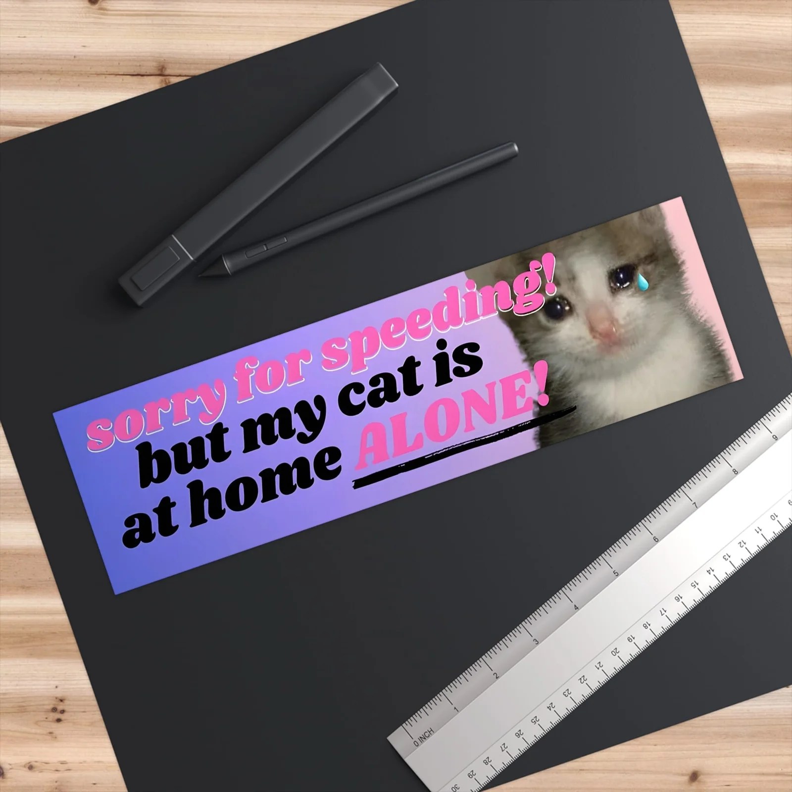 Sorry for Speeding but My Cat is at Home Alone Bumper Stickers