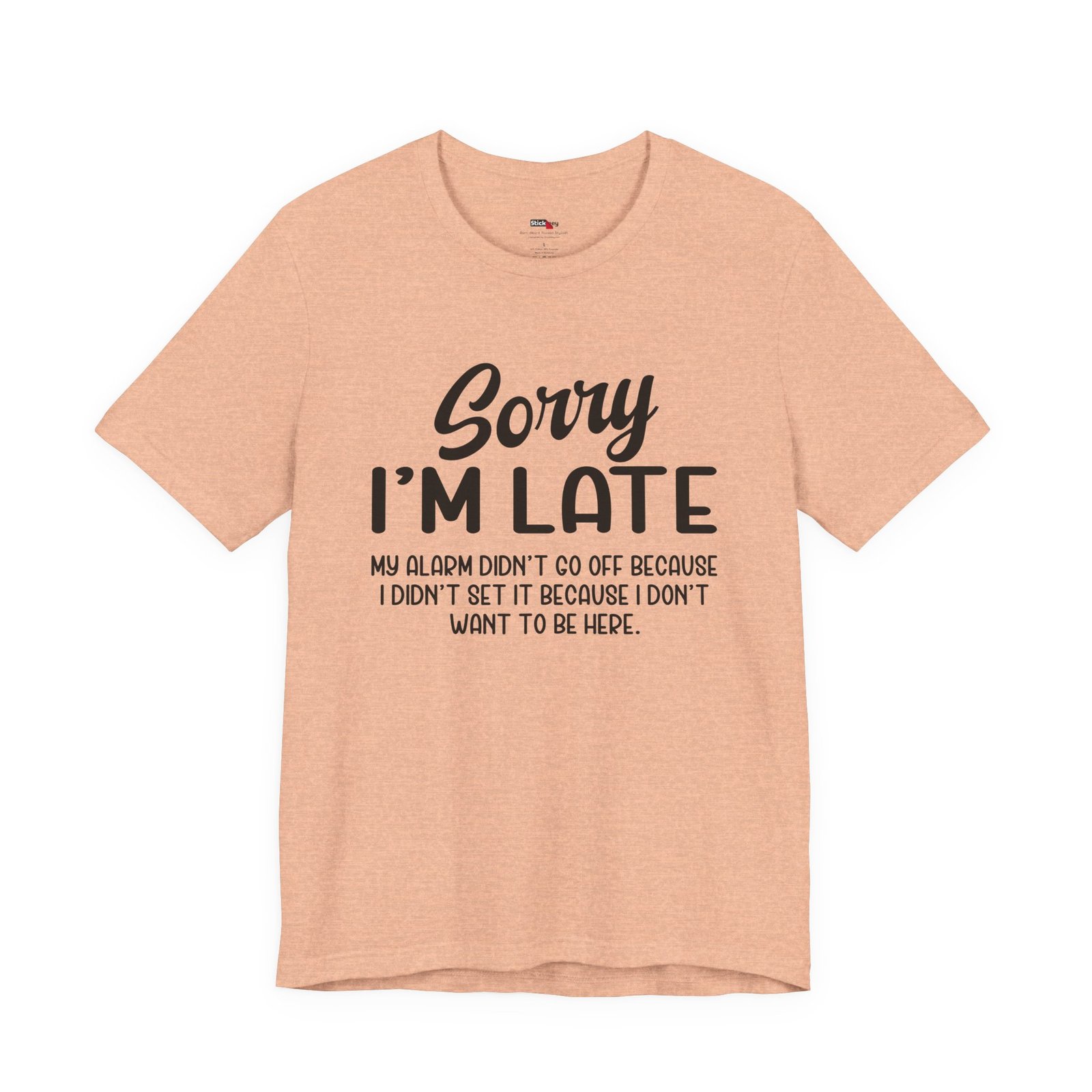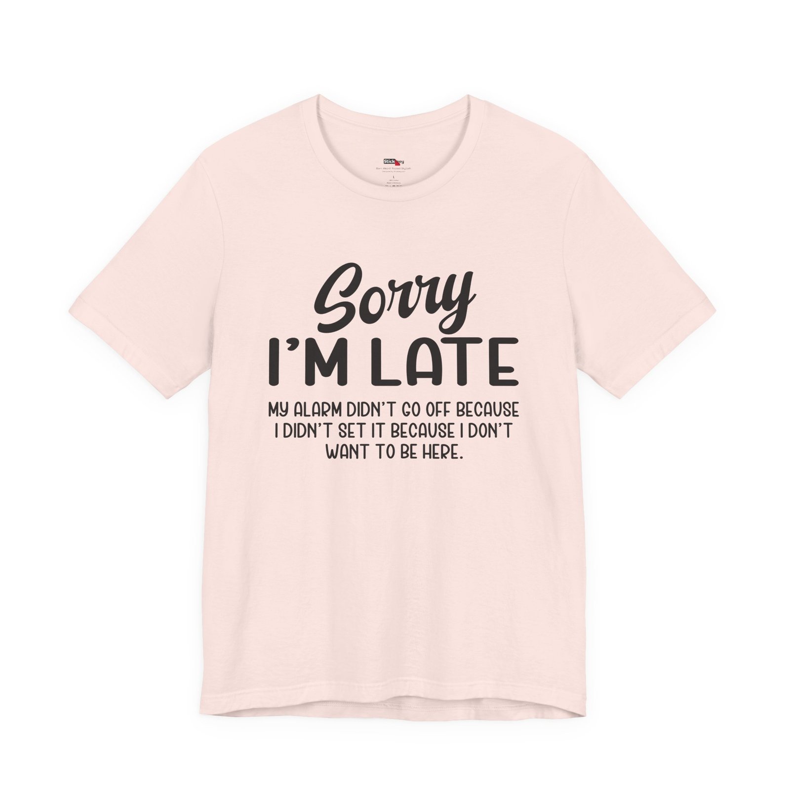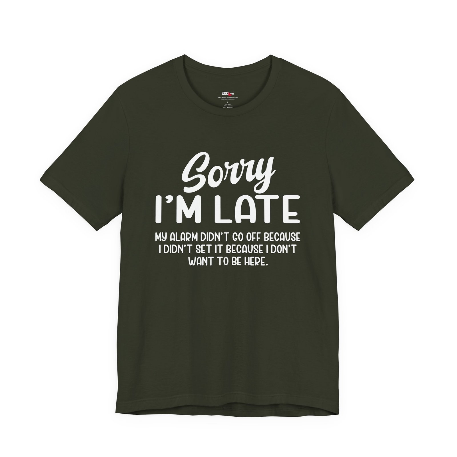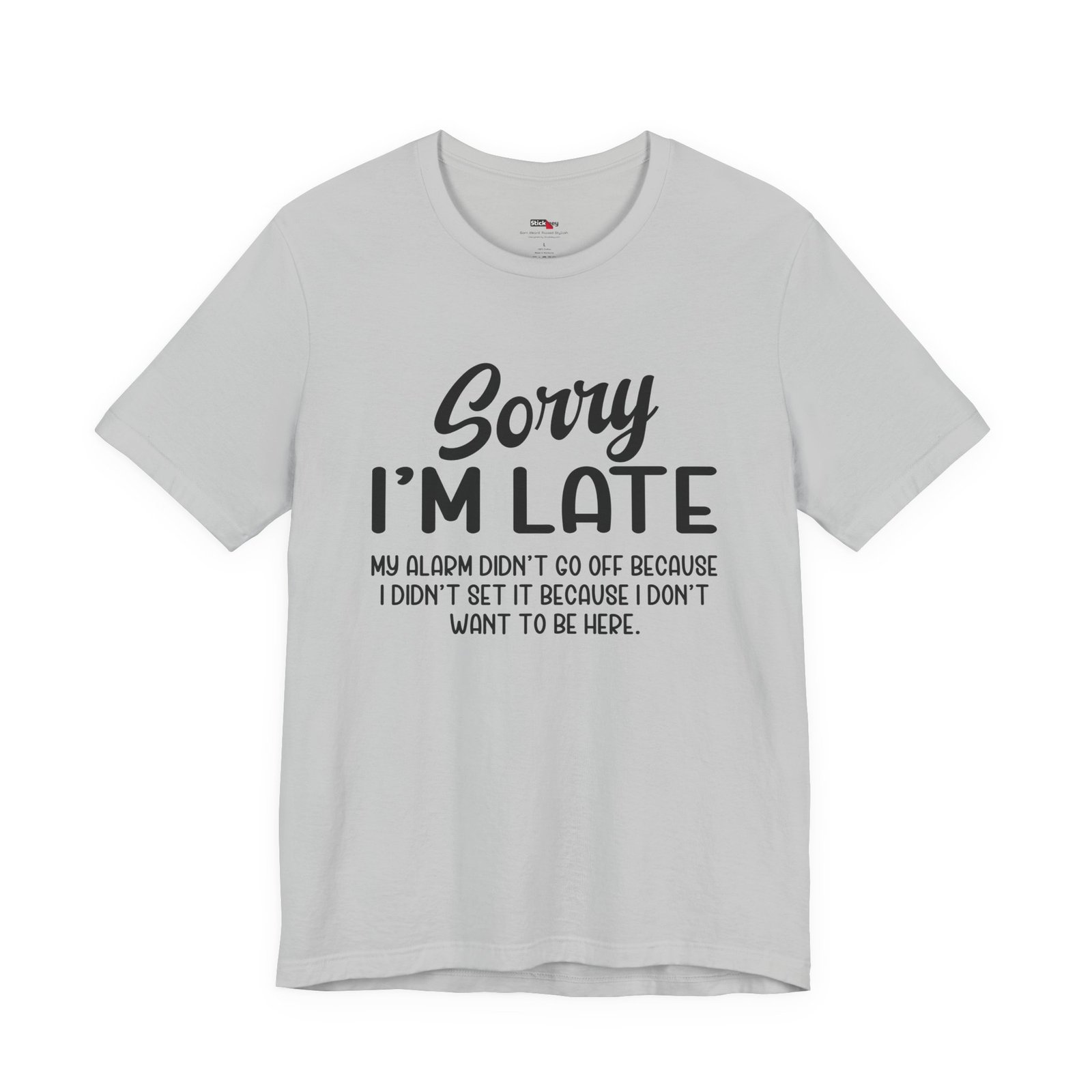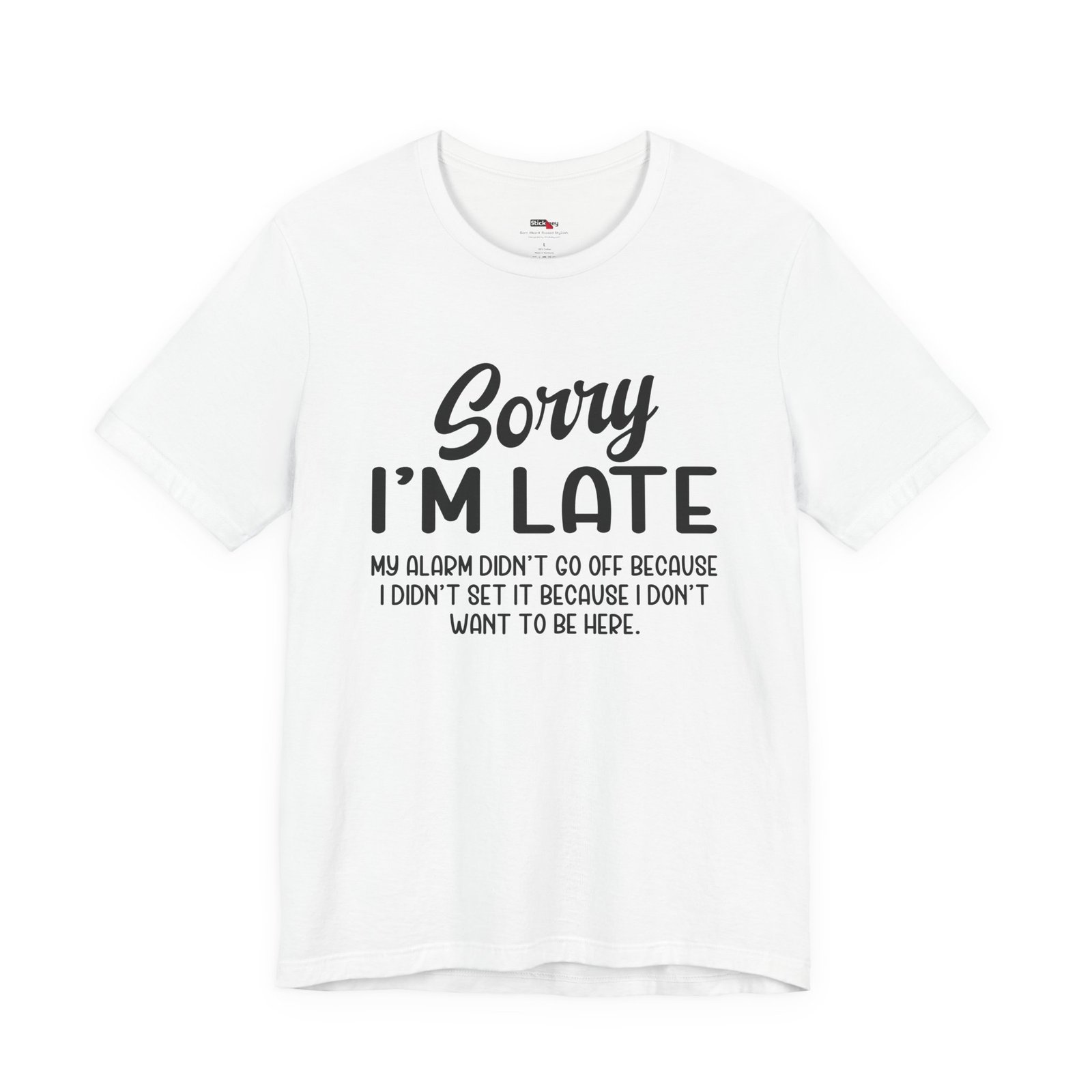 Show up late with honesty and humor in this “Sorry I’m Late My Alarm Didn’t Go Off Because I Didn’t Set It Because I Don’t Want to Be Here” t-shirt. This shirt delivers relatable sarcasm for work, school, meetings, or social events. The bold text grabs attention and makes people laugh instantly. Soft fabric and a relaxed fit keep it comfortable for everyday wear. Perfect for introverts, office humor fans, and anyone who runs on sarcasm instead of motivation.