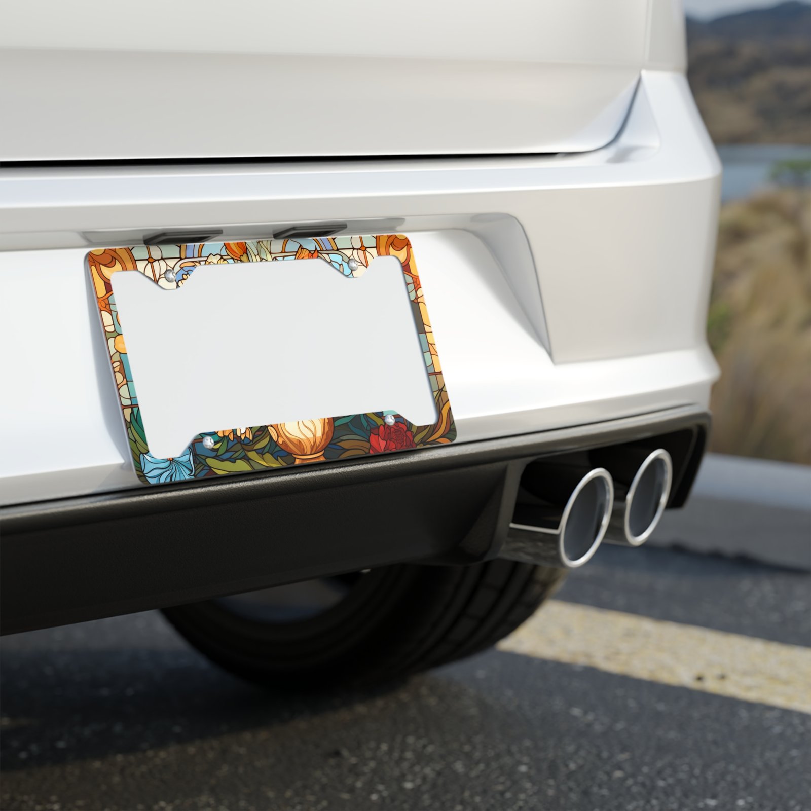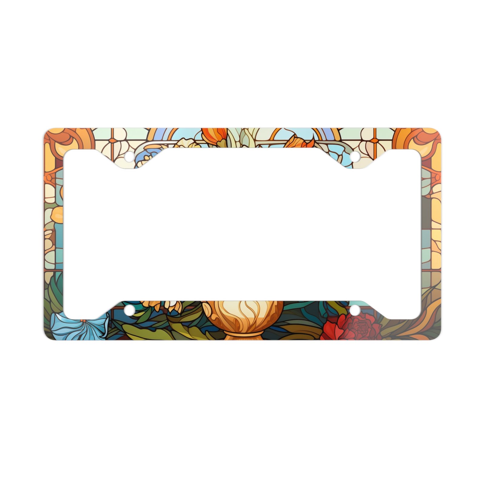 Stained Glass Floral License Plate Frame – Elegant Car Accessory