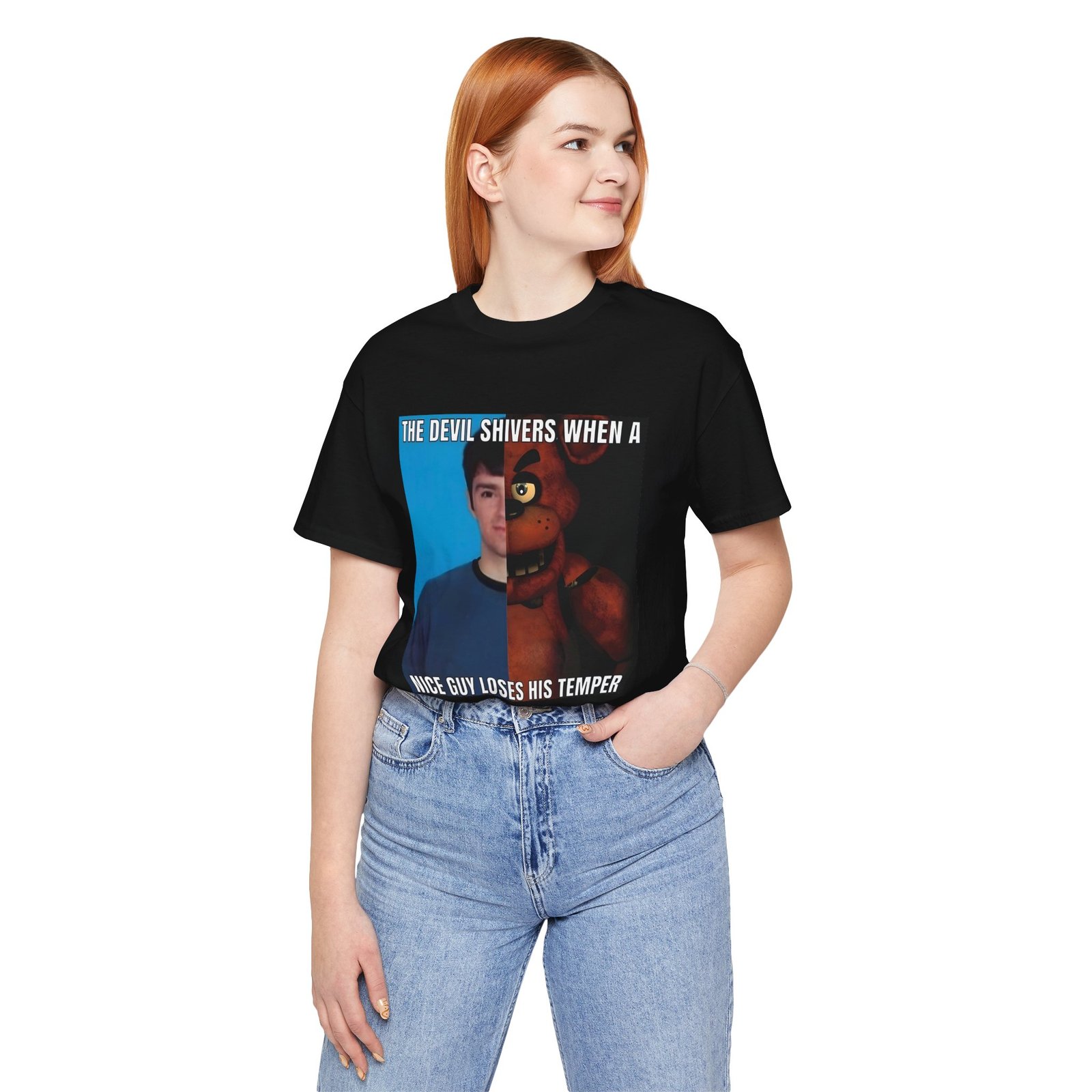 Show off peak internet chaos with this “The Devil Shivers Weezer Freddy Fazbear” meme t-shirt. This shirt blends music culture, gaming nostalgia, and unhinged meme humor into one bold statement. The design hits instantly with irony and absurd comedy, making it perfect for meme lovers, gamers, and fans of viral internet jokes. Soft fabric and a relaxed unisex fit make this tee easy to wear for daily outfits, conventions, or casual hangouts. If your humor lives online, this shirt belongs in your collection.