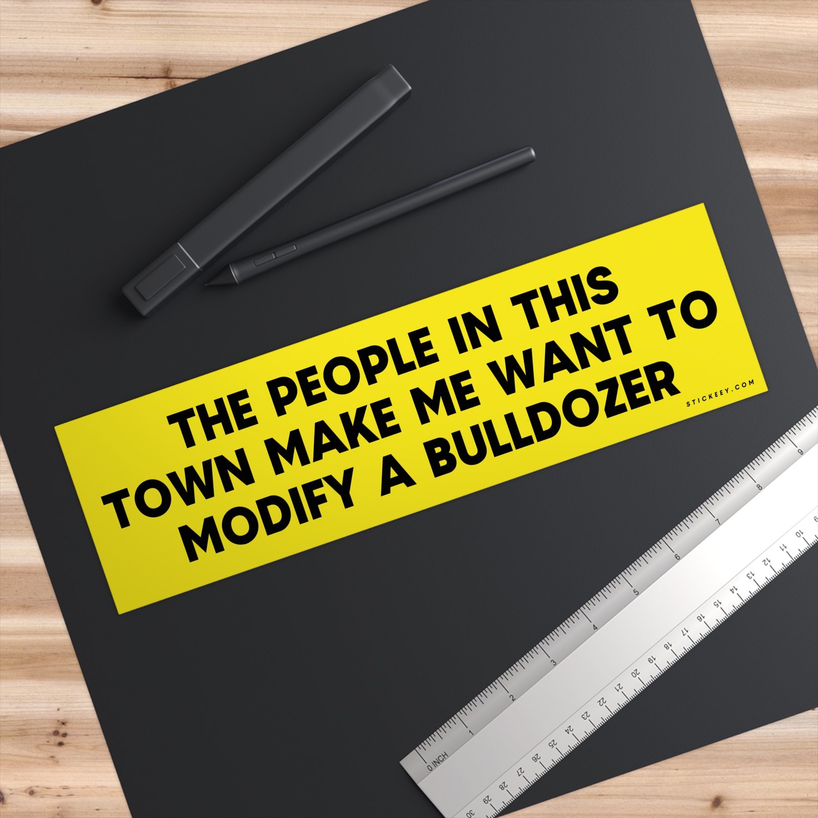 Turn frustration into comedy with this bold and funny bumper sticker: “The People In This Town Make Me Want To Modify A Bulldozer.” Perfect for anyone who deals with annoying traffic, small-town chaos, or just enjoys dark humor. This sticker sticks strong, peels clean, and lasts through rain, sun, and rough roads. Add it to your car, truck, or toolbox to show your sarcastic side and make people laugh at every stoplight. Made for folks who love outrageous jokes and no-filter humor.