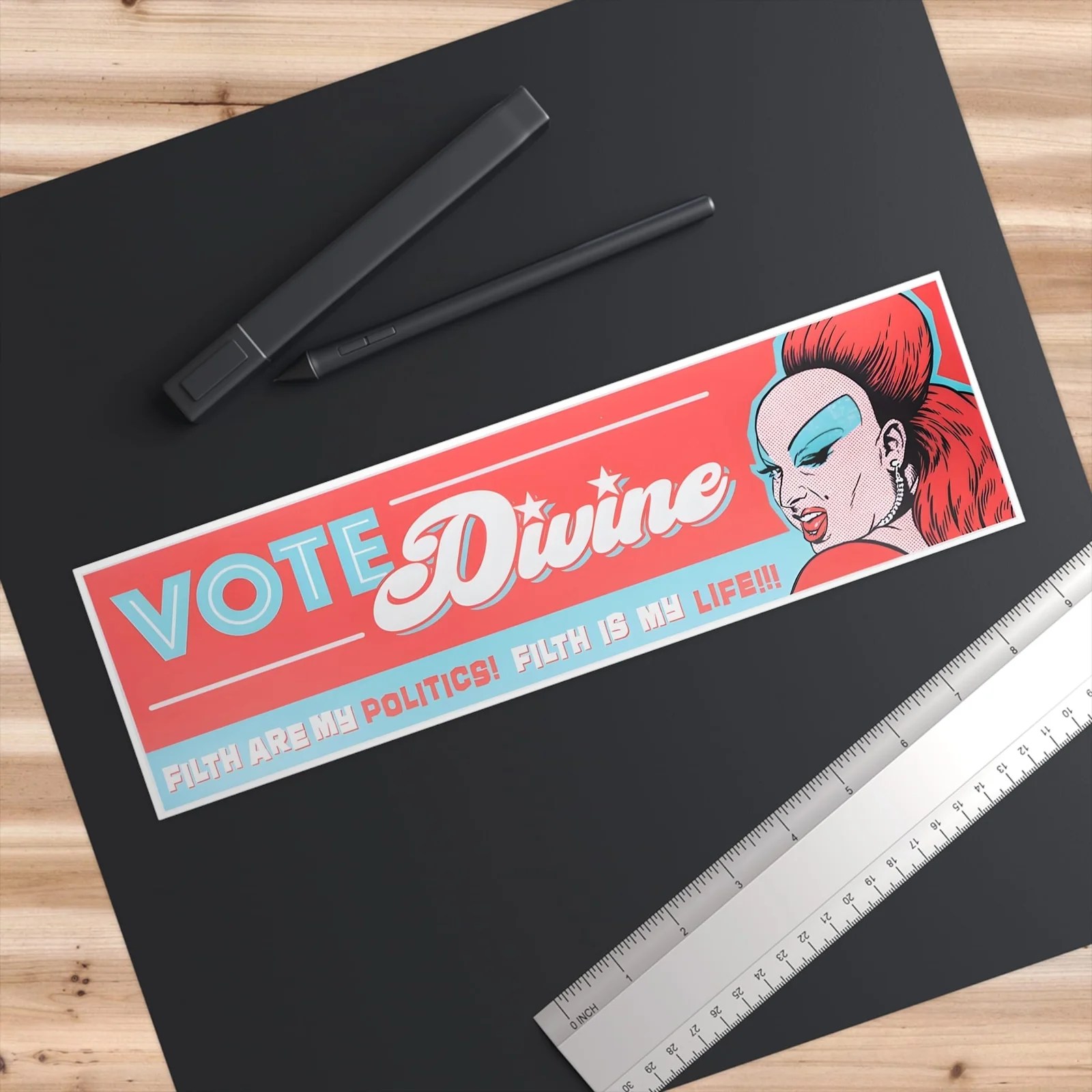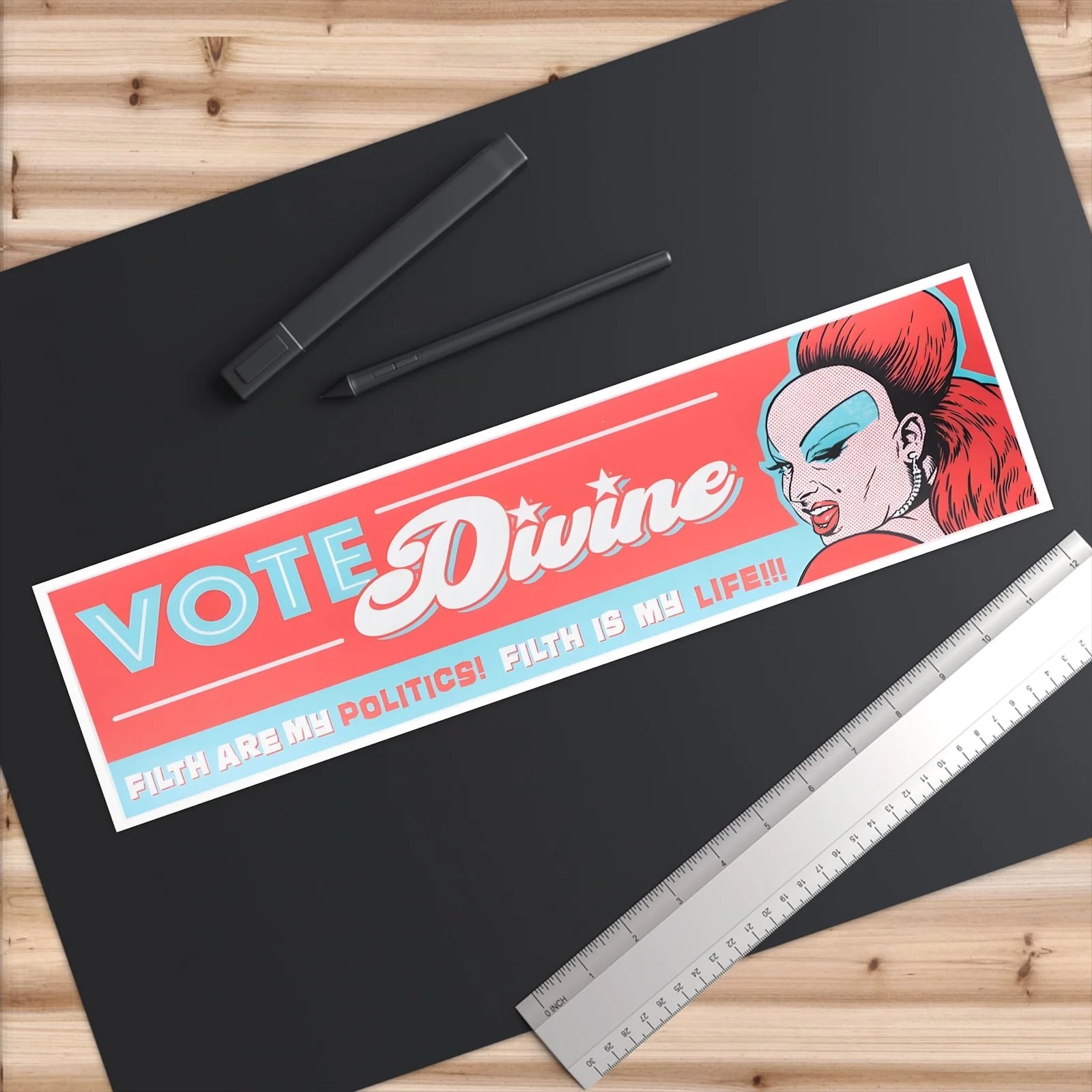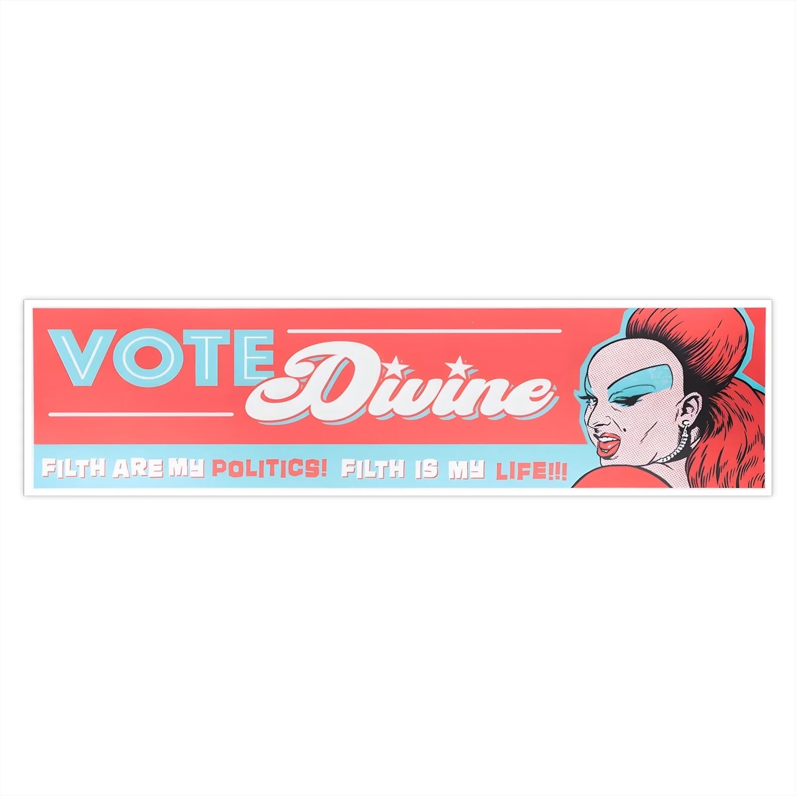 Show your support in a divine way with the “Vote Divine” bumper sticker! Whether it’s a humorous nod to a legendary figure or a bold political statement, this sticker is perfect for adding some flair to your vehicle. Made from high-quality, weatherproof vinyl, it’s designed to stick around through all your travels. Stand out with a witty and stylish message that’s sure to turn heads and start conversations. Ideal for cars, trucks, or any surface where you want to share your message with the world
