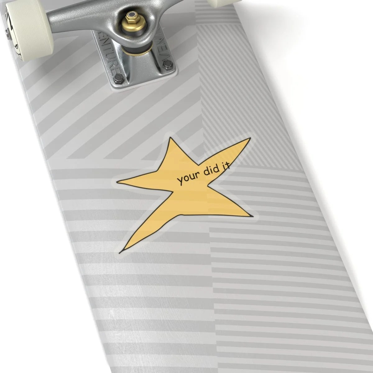 Celebrate achievements and spread positivity with the Your Did It Yellow Star Sticker! This cheerful sticker features a bright yellow star with playful typography, making it perfect for recognizing accomplishments, whether big or small. Ideal for teachers, parents, or anyone looking to uplift others, this high-quality vinyl sticker is perfect for decorating notebooks, planners, or even your favorite water bottle. Let everyone know they’ve done an amazing job with this fun and motivational sticker!